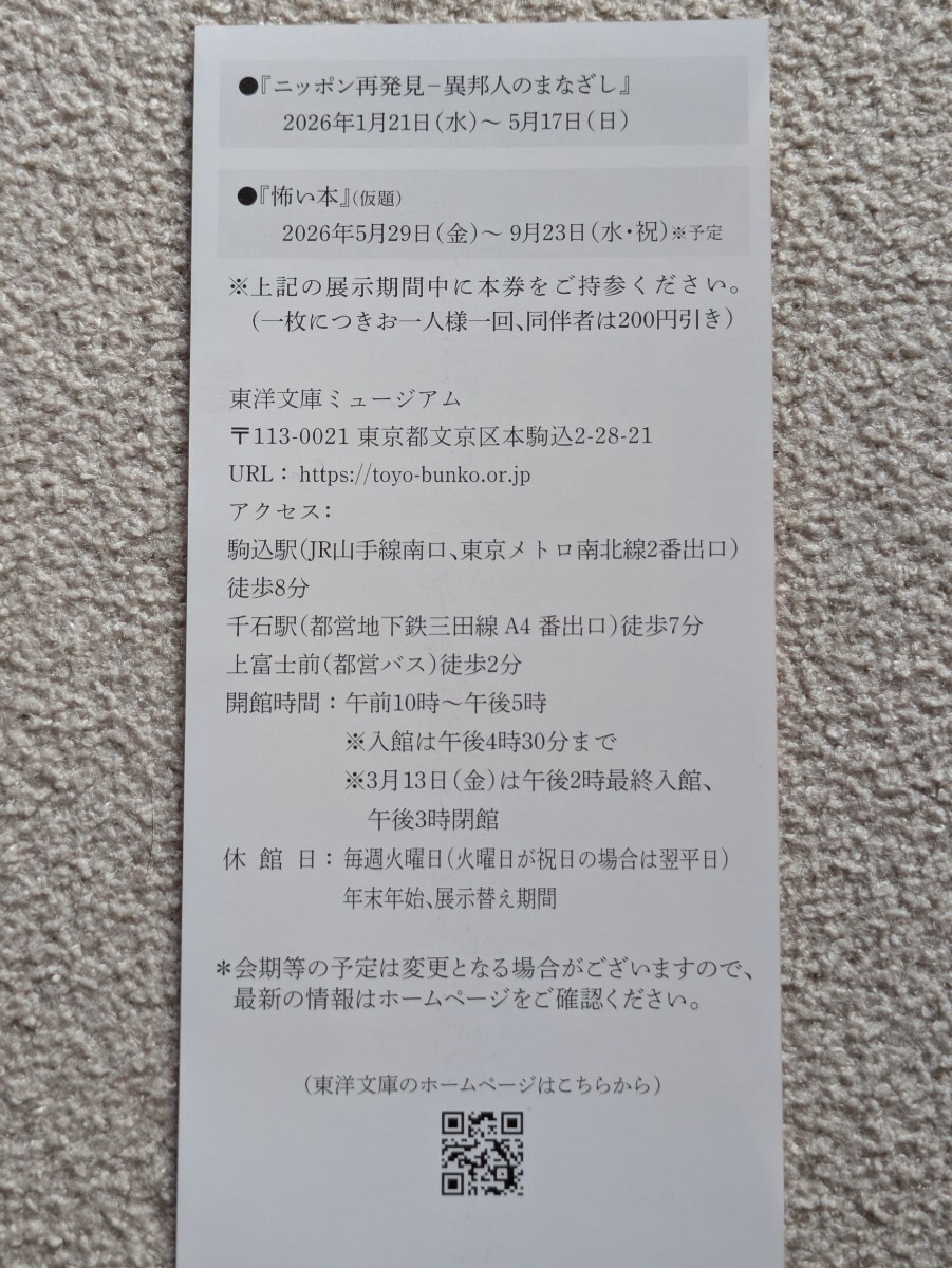 ★東洋文庫ミュージアム★無料ご招待券2枚★株主優待★