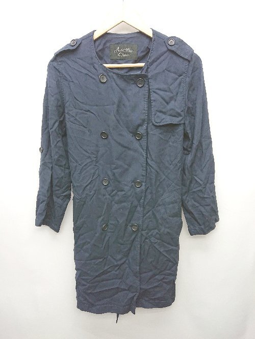◇ ◎ Another Edition アナザーエディション ノーカラー キレイめ 薄手 長袖 コート サイズM ネイビー レディース P