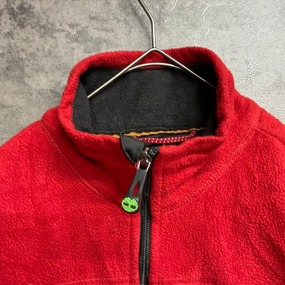 鮮やかなレッドが目を引くティンバーランドの定番フリースジャケット。胸元と背面に映える刺繍ロゴが魅力で、軽量ながら保温性にも優れた人気アイテムです。アウトドアにもタウンユースにも活躍します。