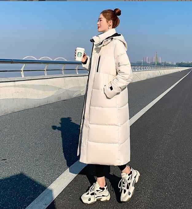 ダウンジャケット ロング丈 コットン 防寒 レディース L ホワイト