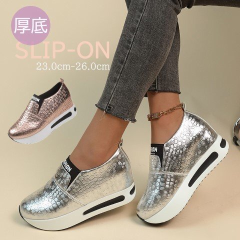 ・キラキラと輝く存在感抜群の厚底スリッポン。