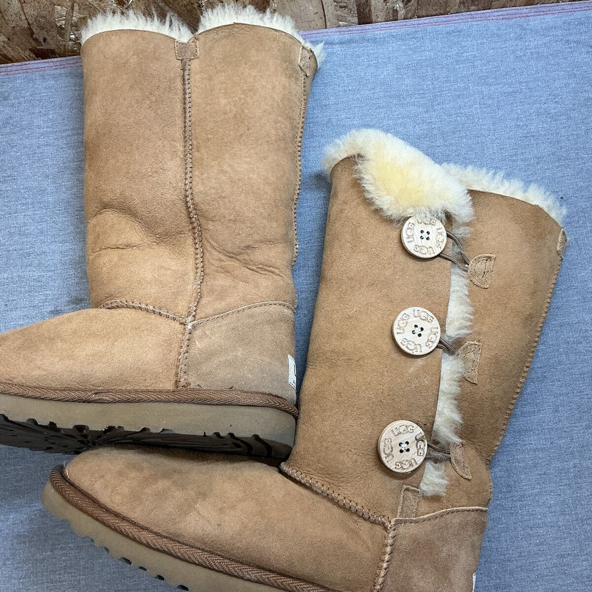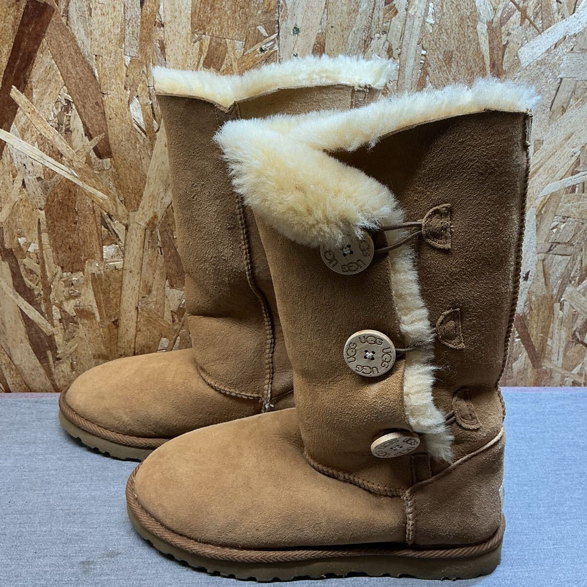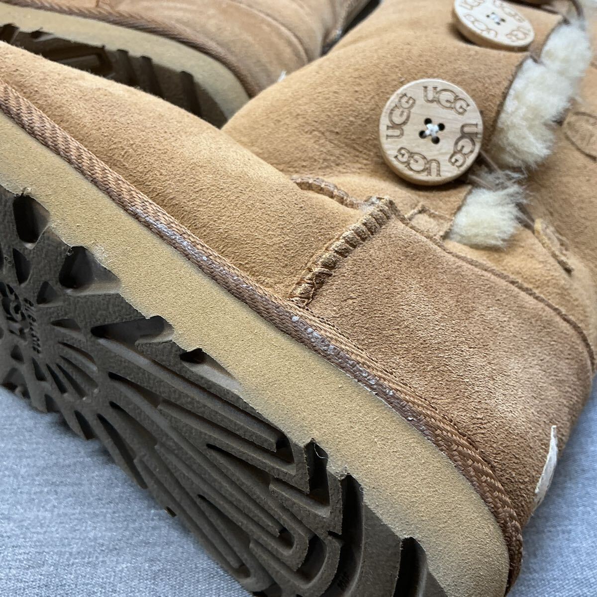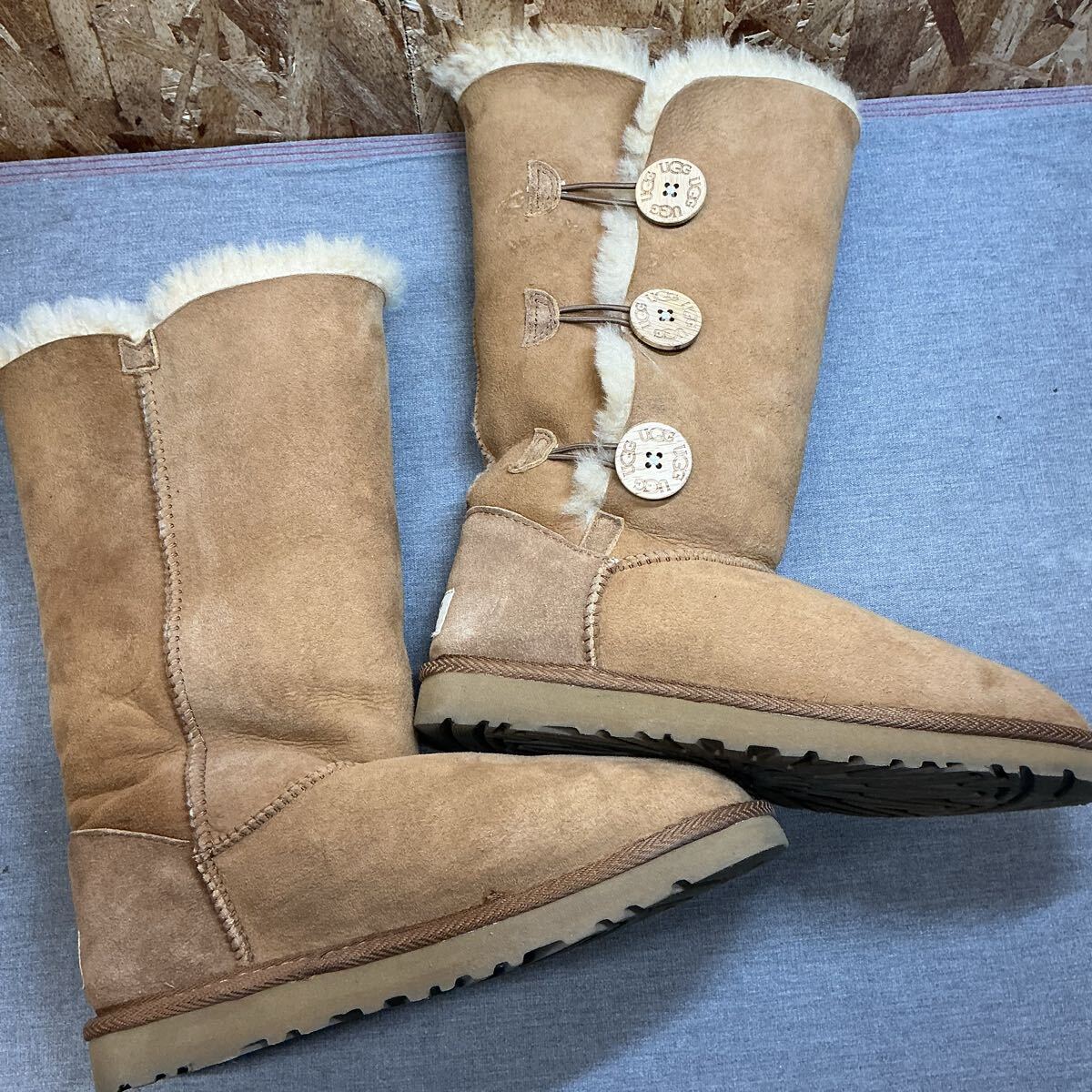 3個のボタン留めの装飾が施されたシープスキンブーツ、