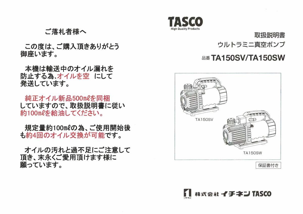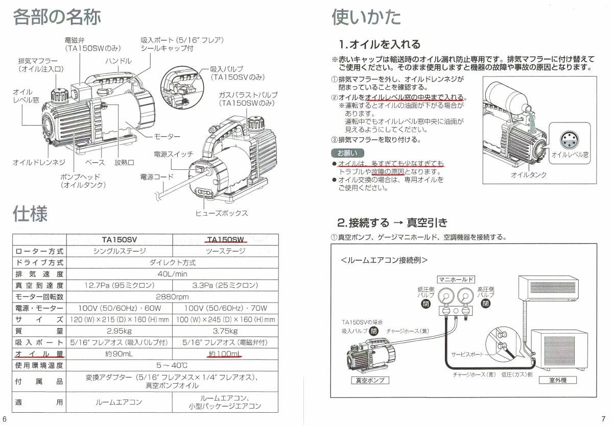 イチネンTASCO オイル逆流防止弁付ウルトラミニツーステージ真空ポンプ TA150SW