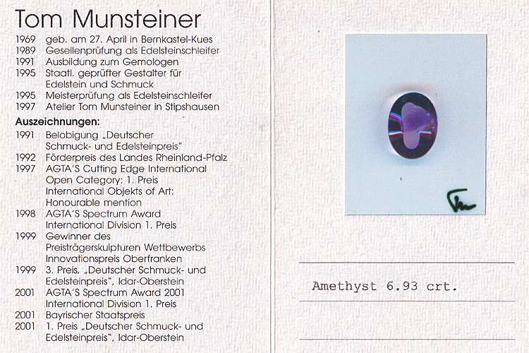商品名 Tom Munsteiner トム・ムーンシュタイナー アメジスト ペンダントトップ トパーズ ダイヤモンド K18ホワイトゴールド 作家 デザイナー