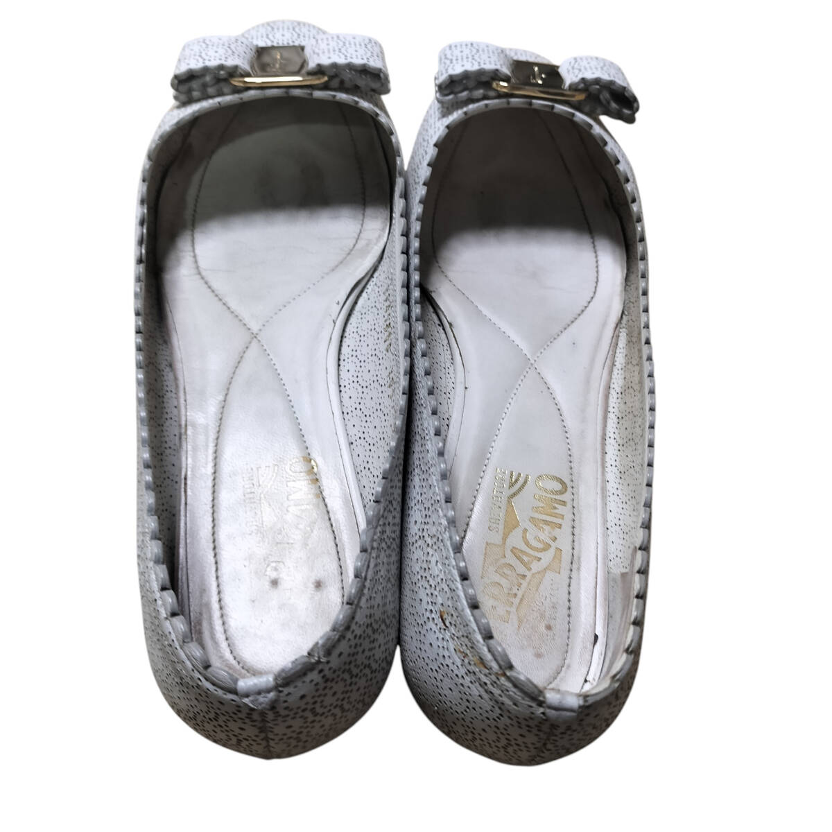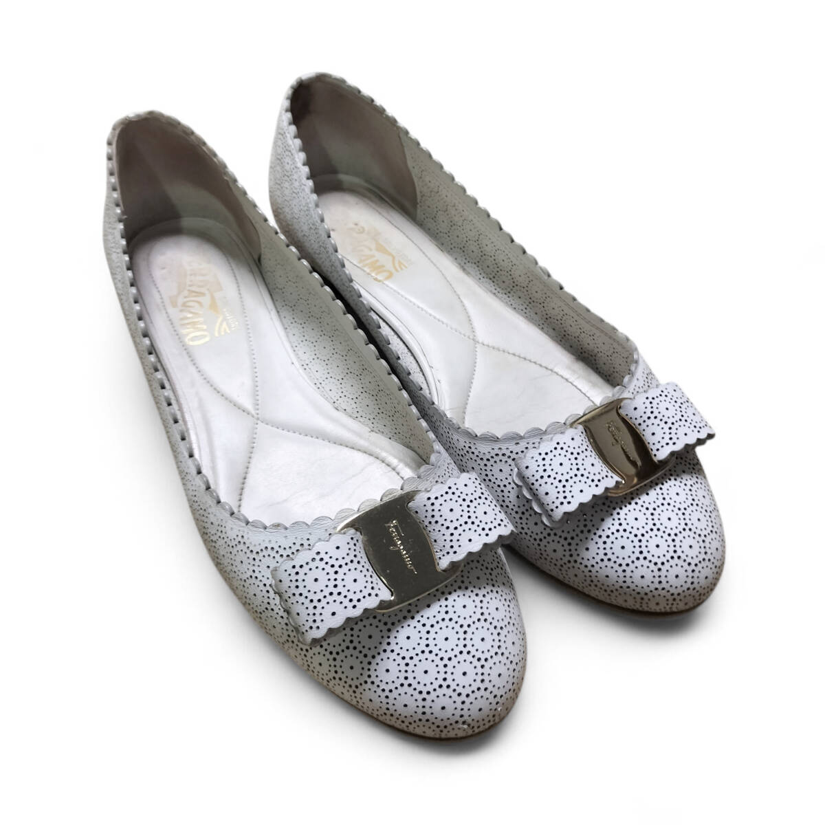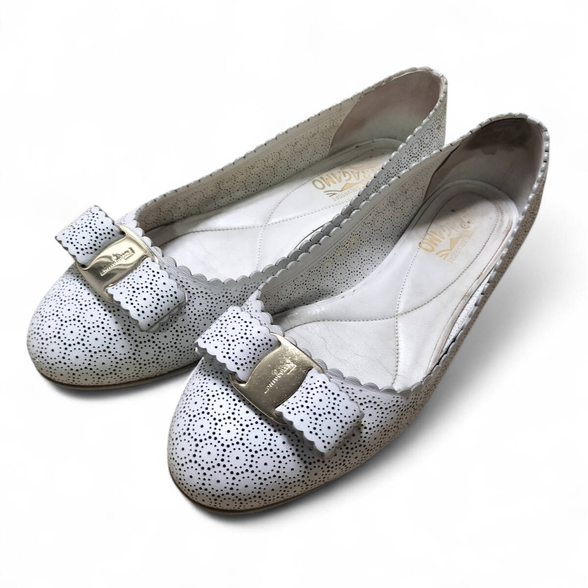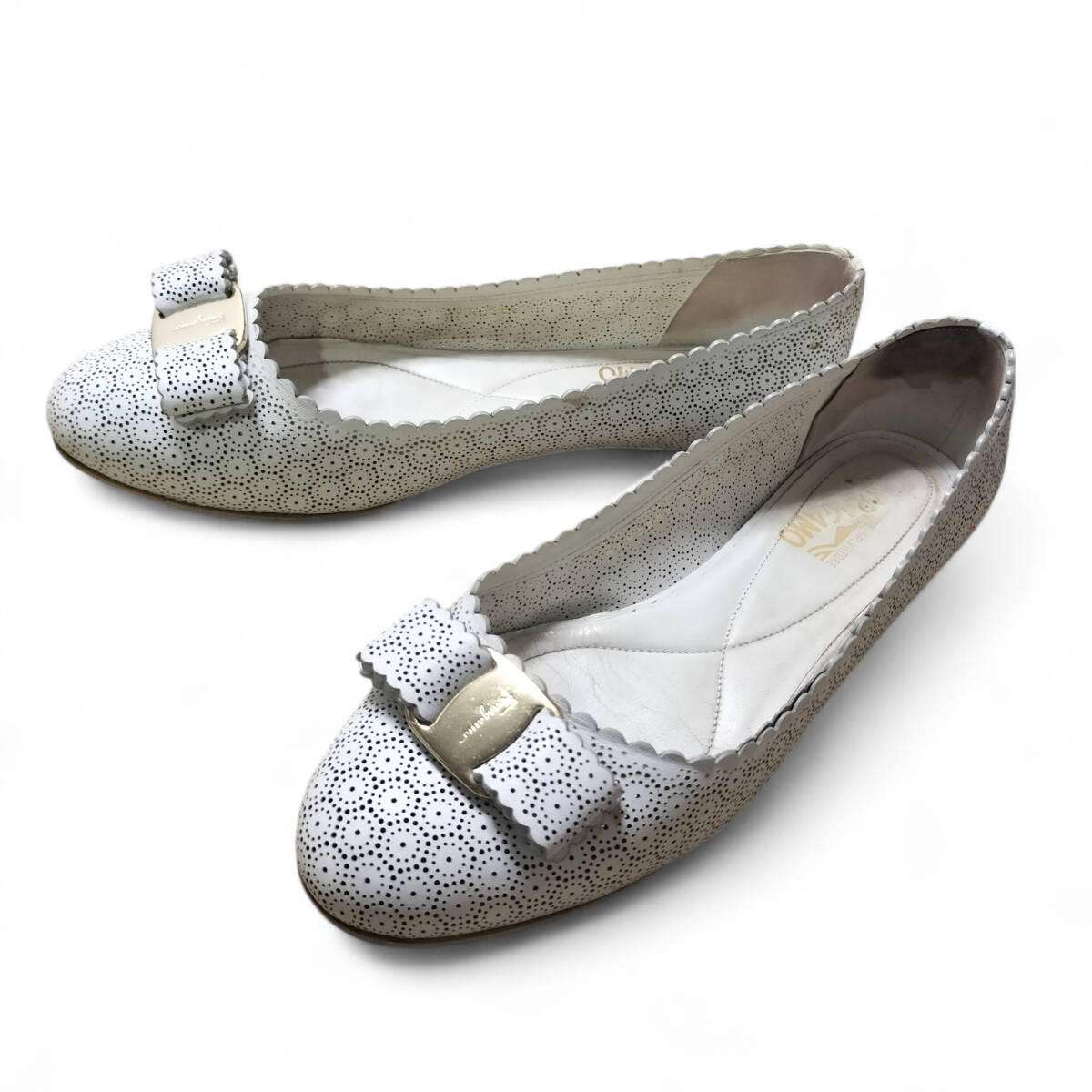 Salvatore Ferragamo サルヴァトーレフェラガモ フェラガモ パンプス フラットシューズ VARA ヴァラ 8D 24.5cm相当 白 ホワイト