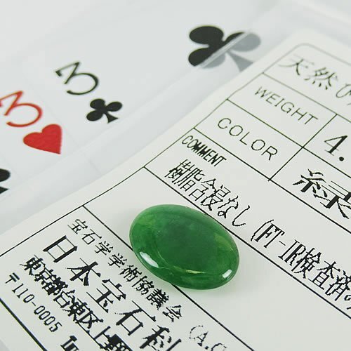 | 品名 /【SJ】新品 ヒスイ(ジェイダイト) 4.00ct ジュエリールース 材質 / 天然ヒスイ(ジェイダイト) 縦・横 / (約)13.8mm 9.7mm 厚さ / (約)3.5mm 総重量 / 4.00ct 日宝協ソーティング付き 【SJ】/ 新品製品 品番 / ACD480 参考小売価格 / 308,000円 |