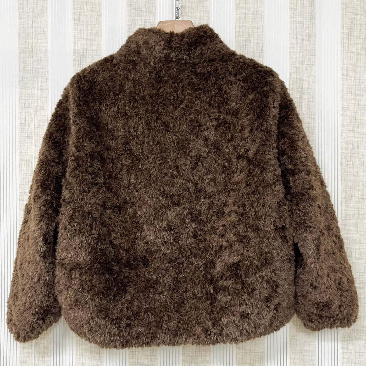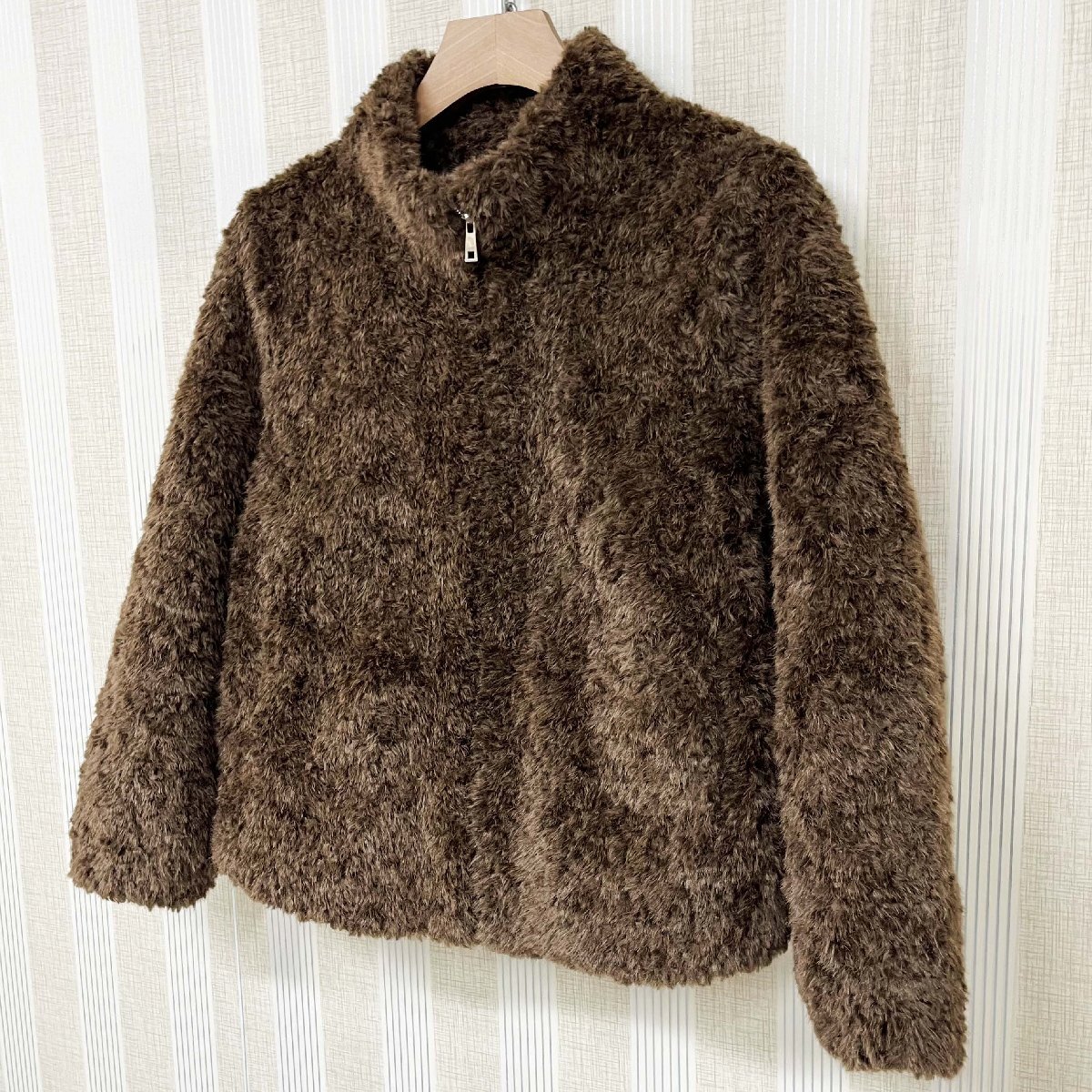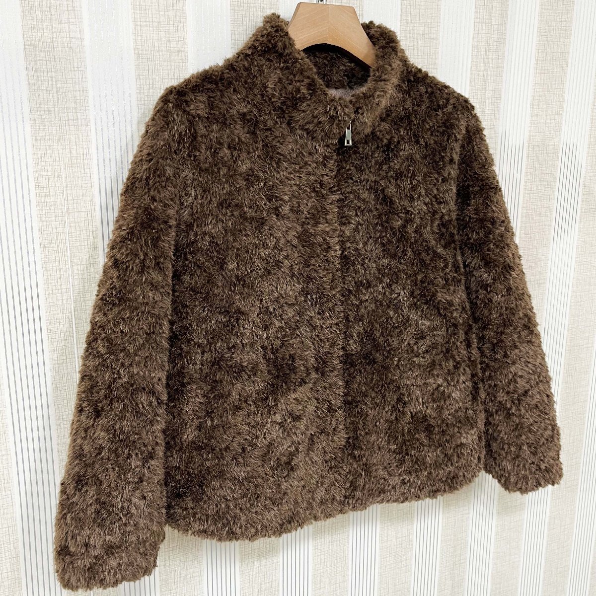ボアジャケット イタリア製造 ウール混紡 もこもこ ソフト 防寒 柔らか スタンドカラー カジュアル ブルゾン アウター コート 秋冬 SIZE:L