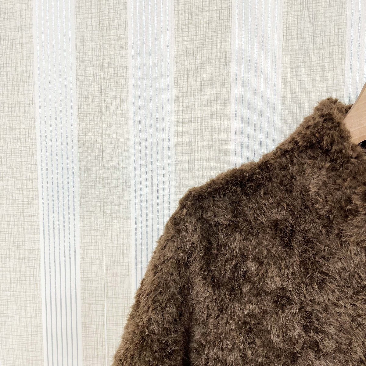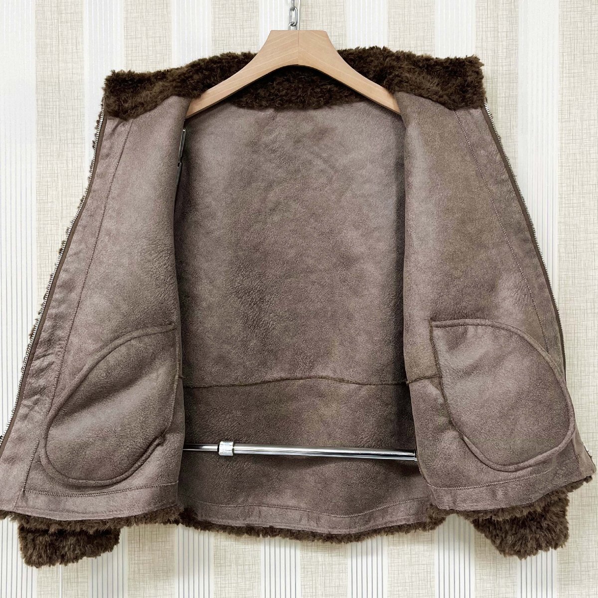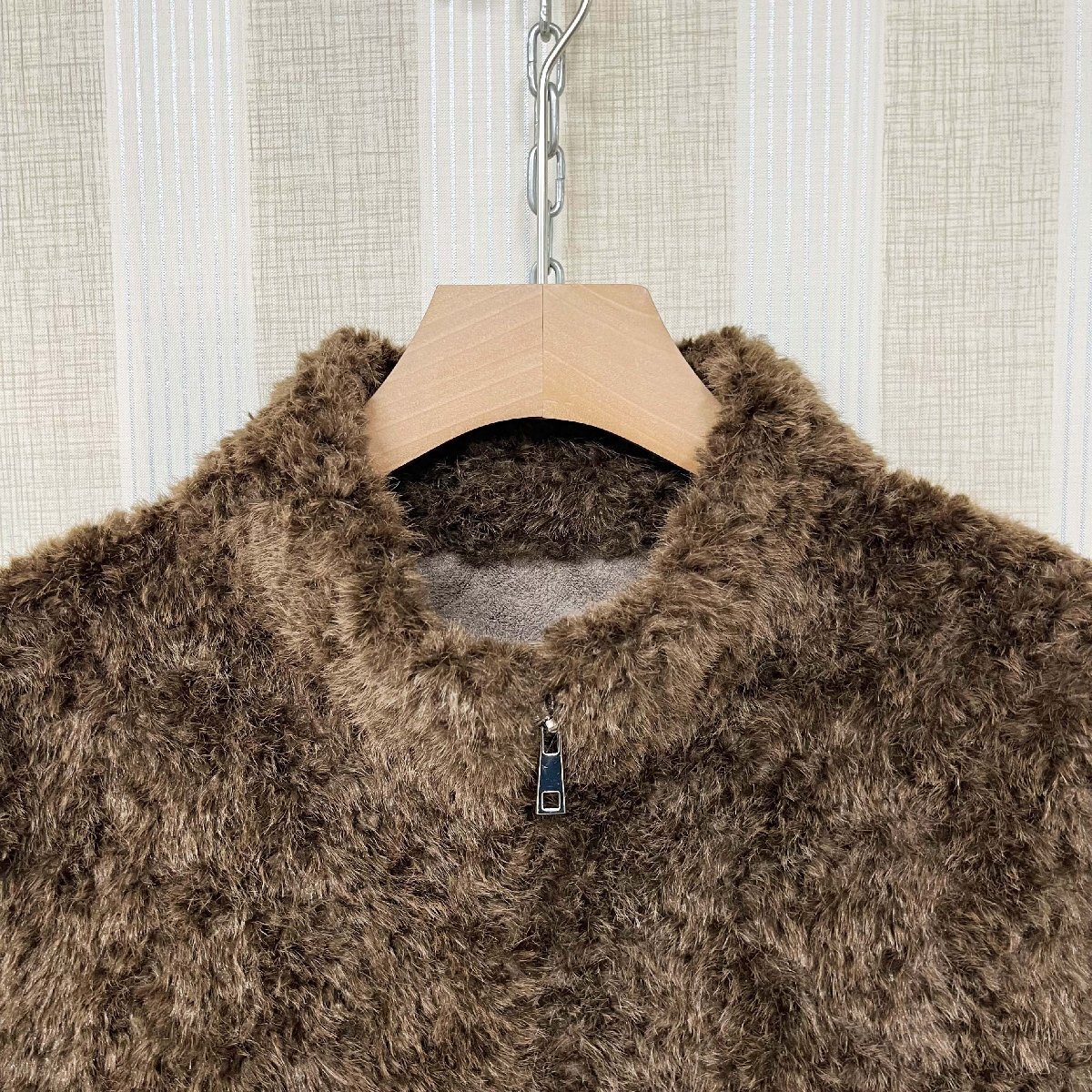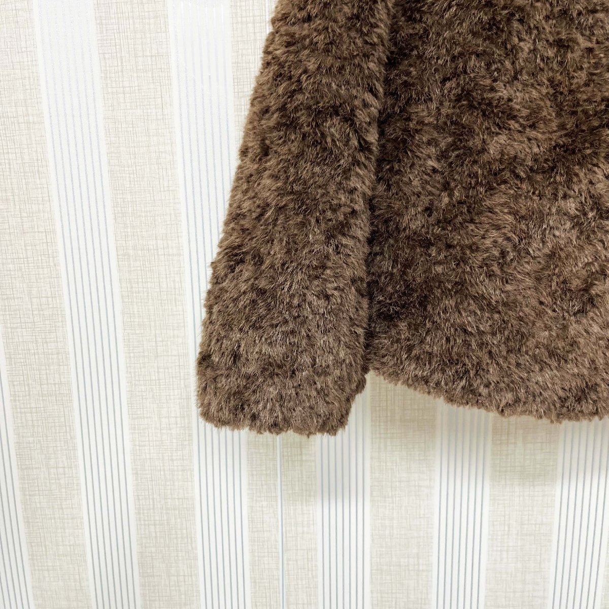 ボアジャケット イタリア製造 ウール混紡 もこもこ ソフト 防寒 柔らか スタンドカラー カジュアル ブルゾン アウター コート 秋冬 SIZE:L