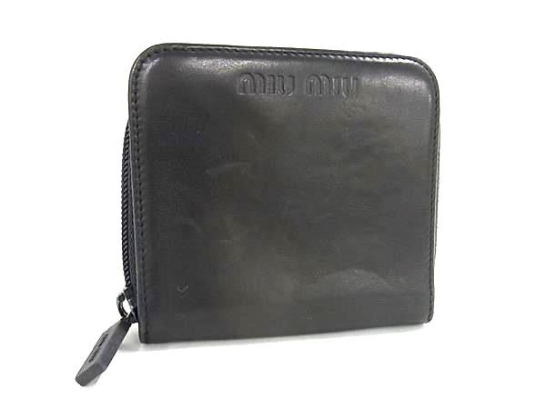 1円 miumiu ミュウミュウ レザー 二つ折り 財布 ウォレット 小銭入れ 札入れ カード入れ メンズ レディース ブラック系 FS7926