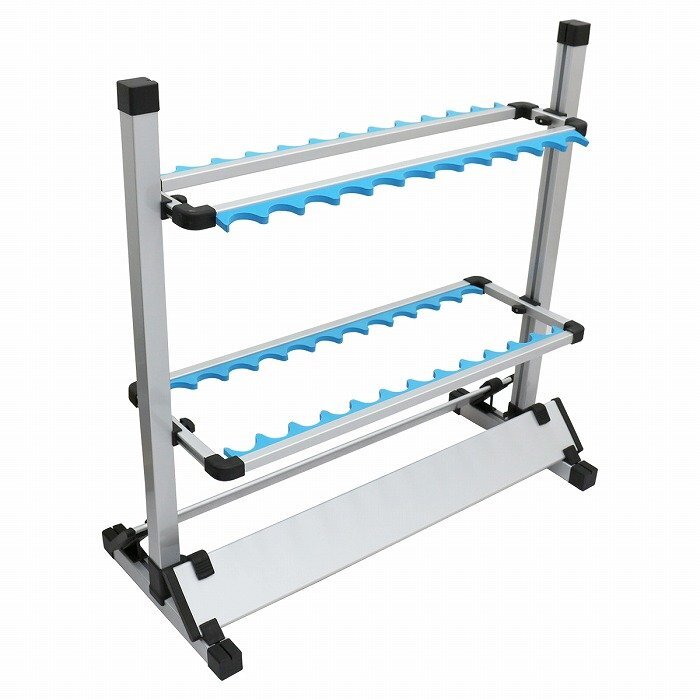 釣り竿 スタンド 24本 収納 竿 竿立て ロッド ホルダー アルミ 軽量 青 ブルー 竿 受け 置き 保管 釣り 竿 幅70cm