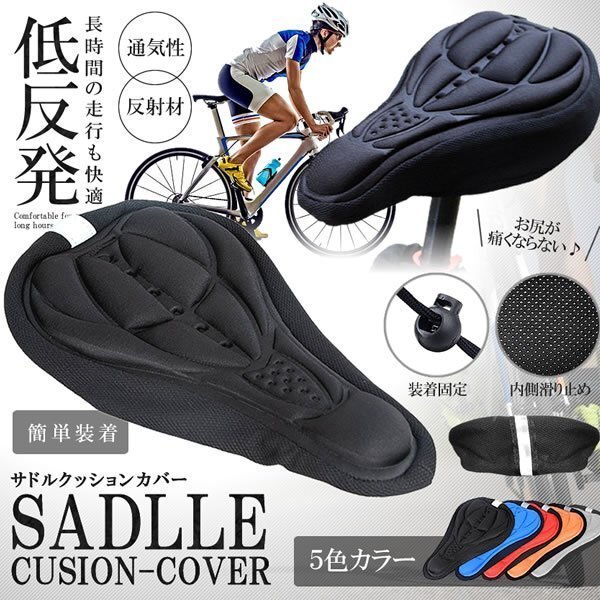 こちらのカラーは 【ブラック】 になります。 低反発クッションサイクリング中のおしりの痛みを軽減するサドルカバーです。高い通気性速乾性に優れ蒸れずに快適にご使用いただけます。反射材仕様夜間での後部から接近してくる車や自転車に存在を示し衝突事故を未然に防ぐ事が可能です。どなたでも簡単に着脱ができます。使用しないときの取り外しも簡単に行えます。サイクリング、通勤、エクササイズママチャリな幅広い自転車に装着可能です。商品サイズ:275mmx175mm