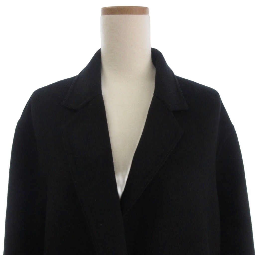 ユニクロ UNIQLO ダブルフェイスチェスター ロング コート 439721 ウール混 黒 ブラック M レディース