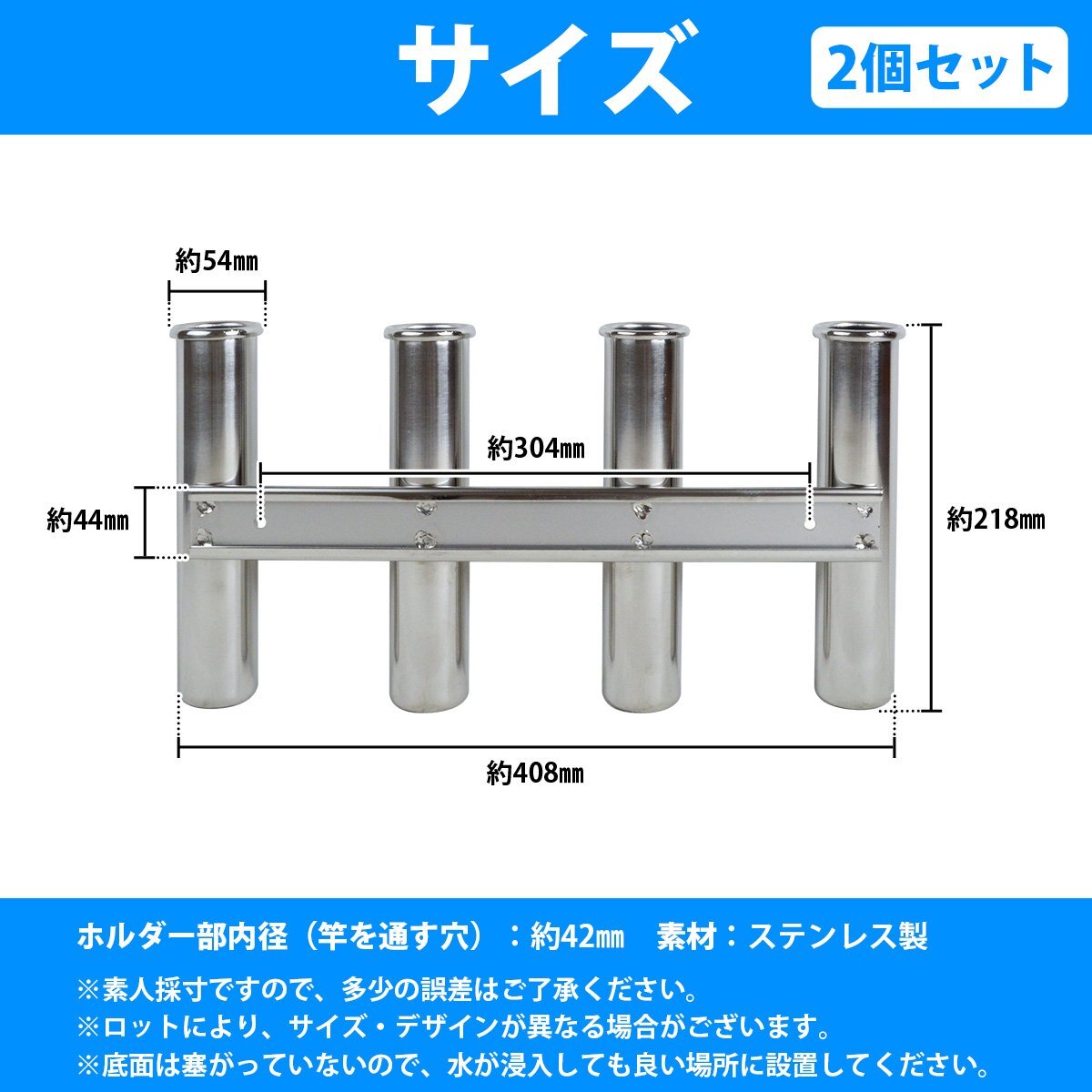 [4連 2本セット]ステンレス製 ロッドホルダー 釣り 竿 置き 受け 船 ボート 漁船 ロッド スタンド 海 フィッシング 2個 4本