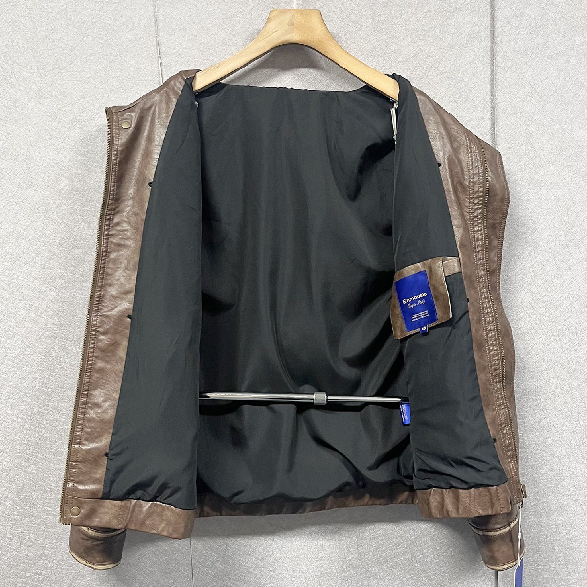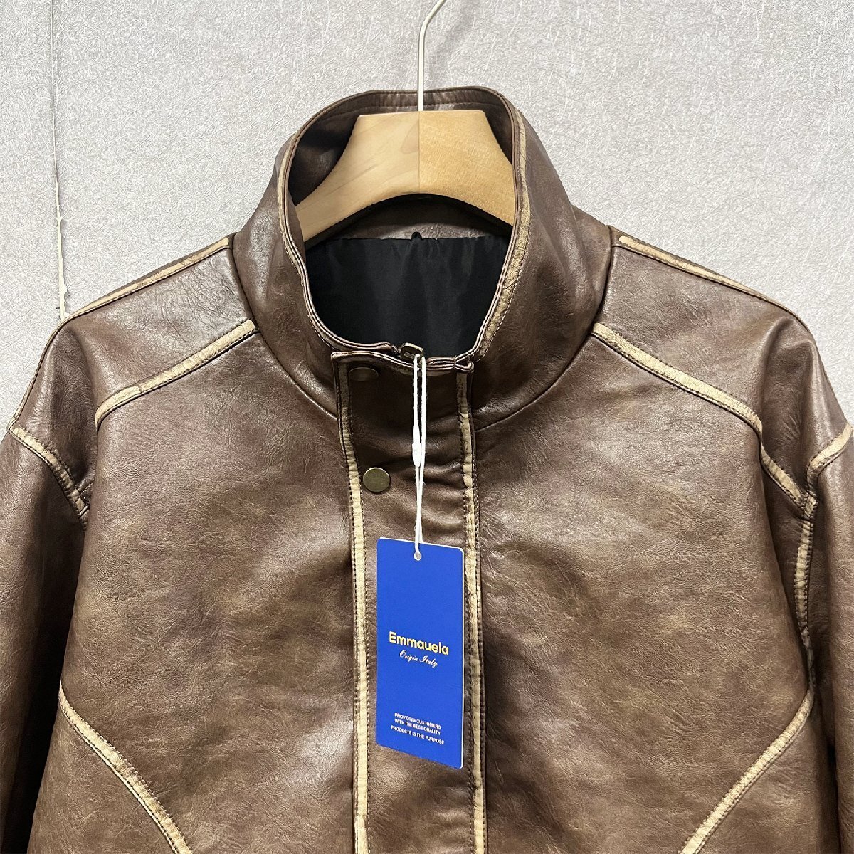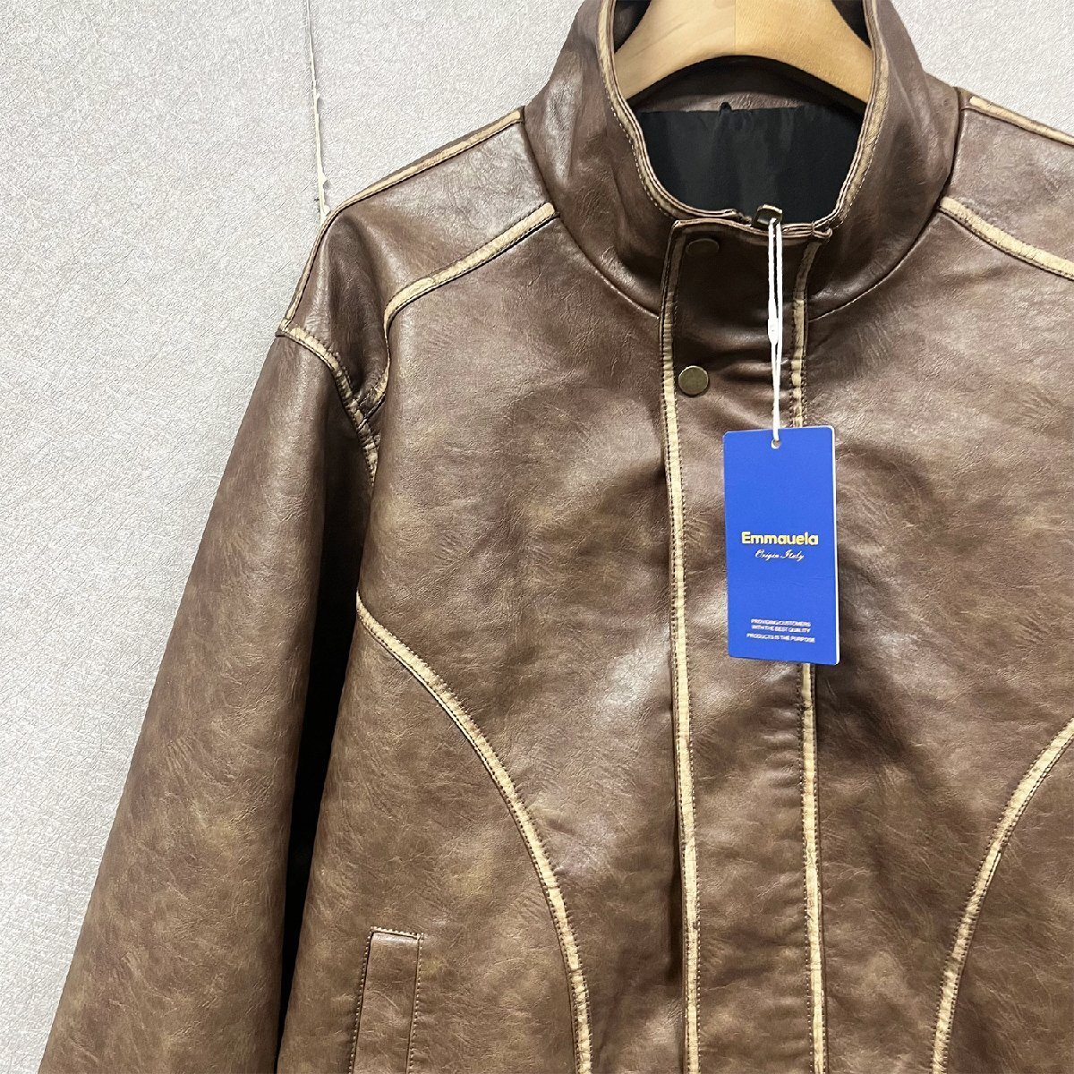 個性・レザージャケット 定価12万◆Emmauela・イタリア・ミラノ発◆最高級牛革 本革 ソフト ビンテージ 革ジャン ライダース バイク用 2XL/52サイズ