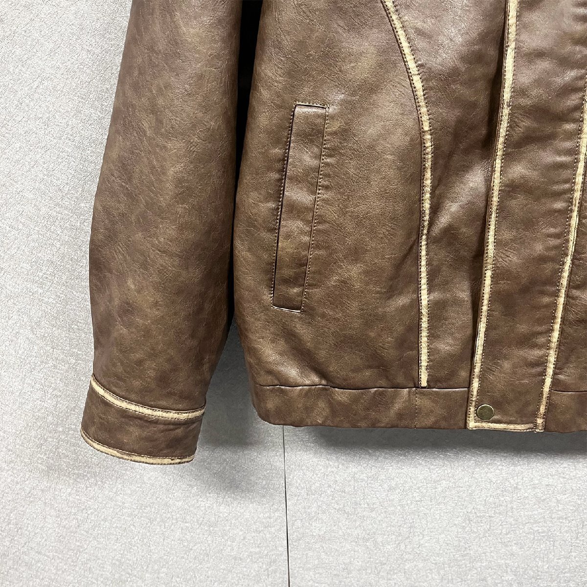 ビンテージ加工を施しておしゃれに仕上げたレザージャケット。