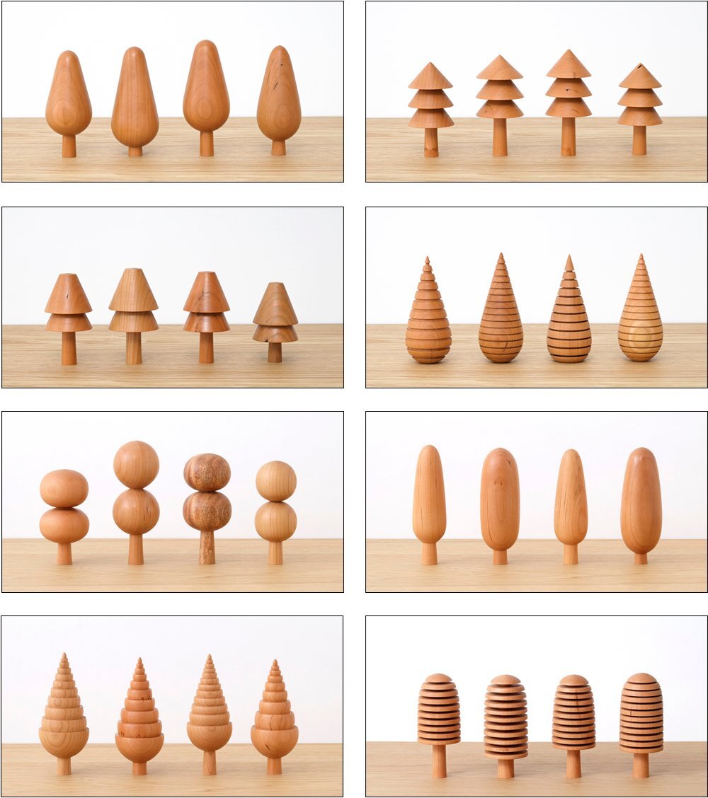 これは同じ種類のオブジェでも使用する木の端材のサイズや木目が異なるため、