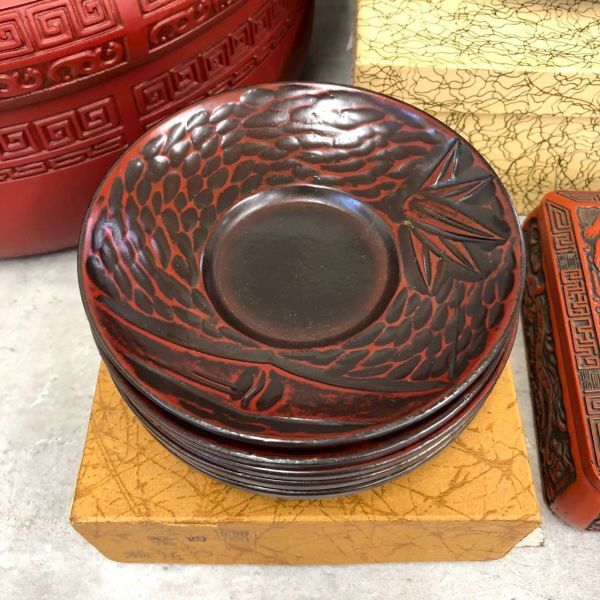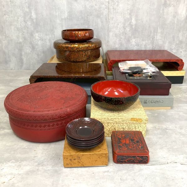 | 漆器 樺細工などまとめ 菓子器 茶道具 鎌倉彫 津軽塗 堆朱塗 未使用保管品含む 箱有 菓子盆 お盆 昭和レトロ |