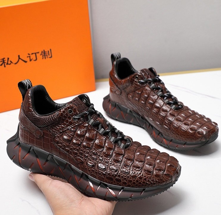クロコダイルレザー スニーカー 最高級 ワニ革 クロコダイル 靴 メンズシューズ 革靴 ブラウン 24.0cm 【n789】