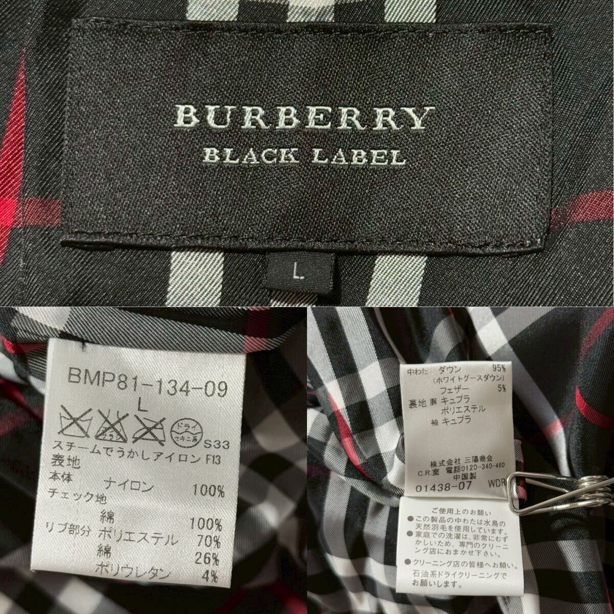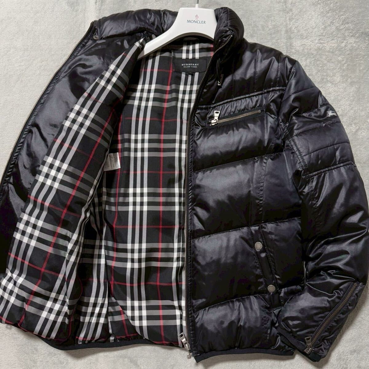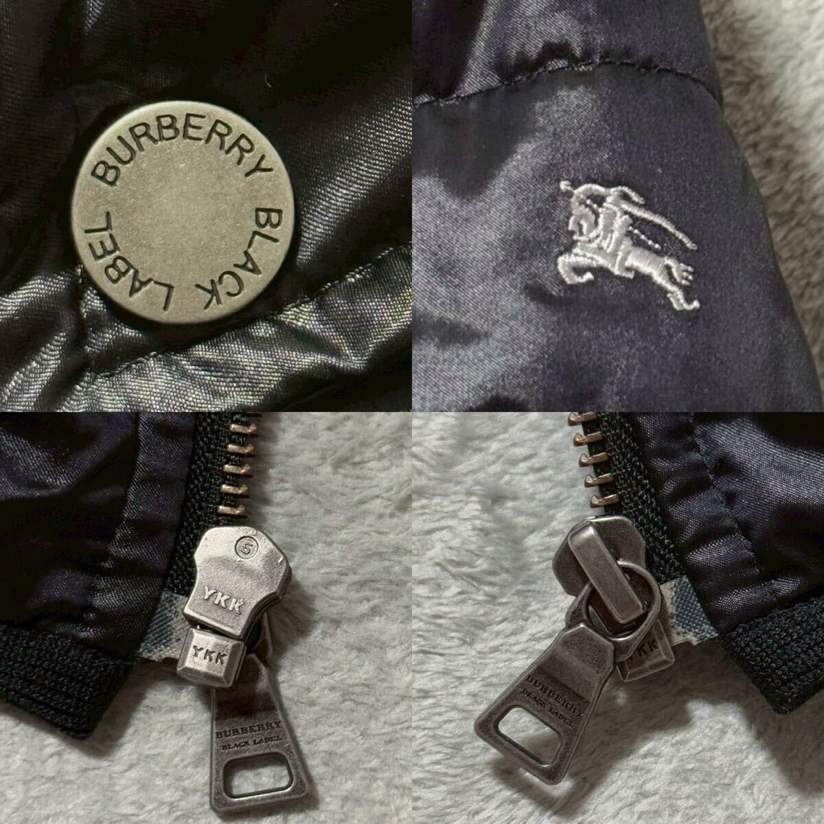 Lサイズ★BURBERRY BLACK LABEL バーバリー ブラックレーベル ダウンジャケット ライダース チェック フード内蔵 黒 ブラック ホースロゴ