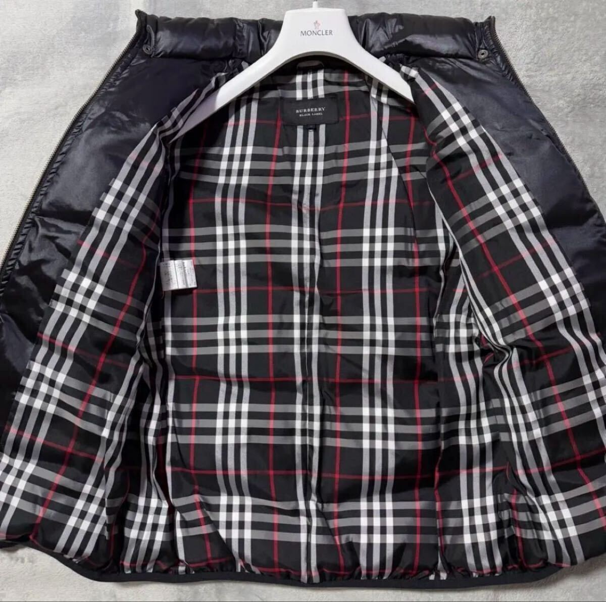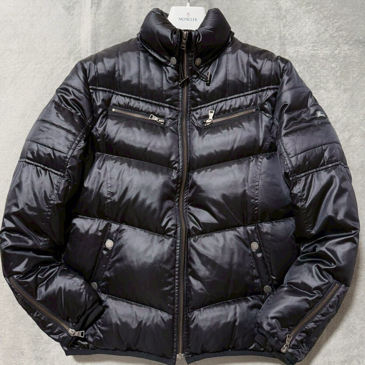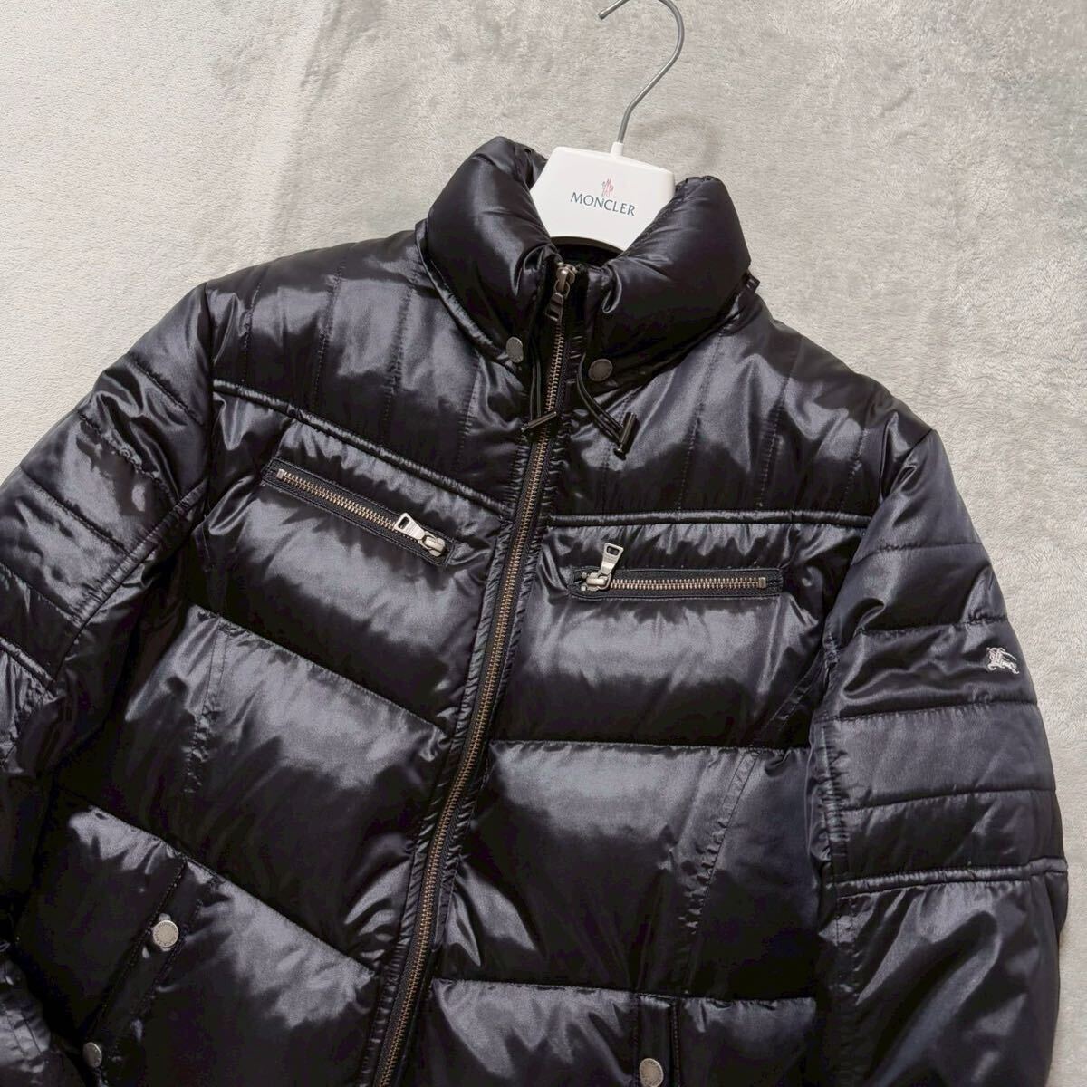 Lサイズ★BURBERRY BLACK LABEL バーバリー ブラックレーベル ダウンジャケット ライダース チェック フード内蔵 黒 ブラック ホースロゴ