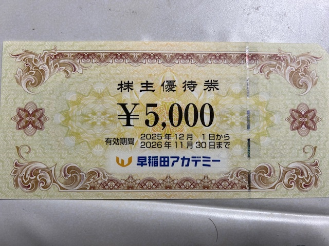 早稲田アカデミーの株主優待券5000円分を出品します。