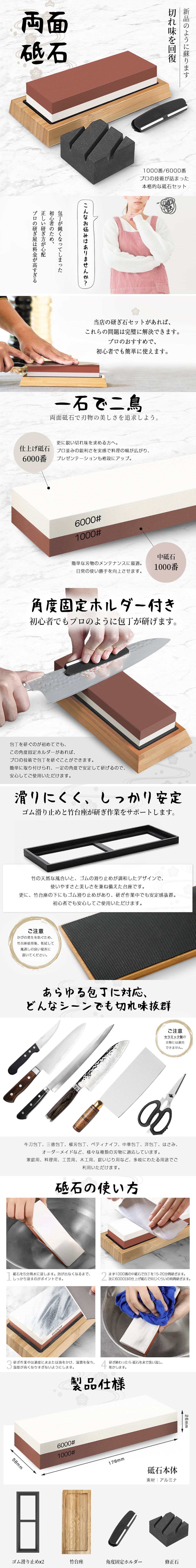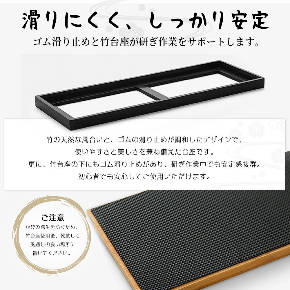 ◆【商品内容】: 砥石本体、ゴム滑り止めx2、竹台座、角度固定ホルダー、修正石 ◆【商品特徴】: