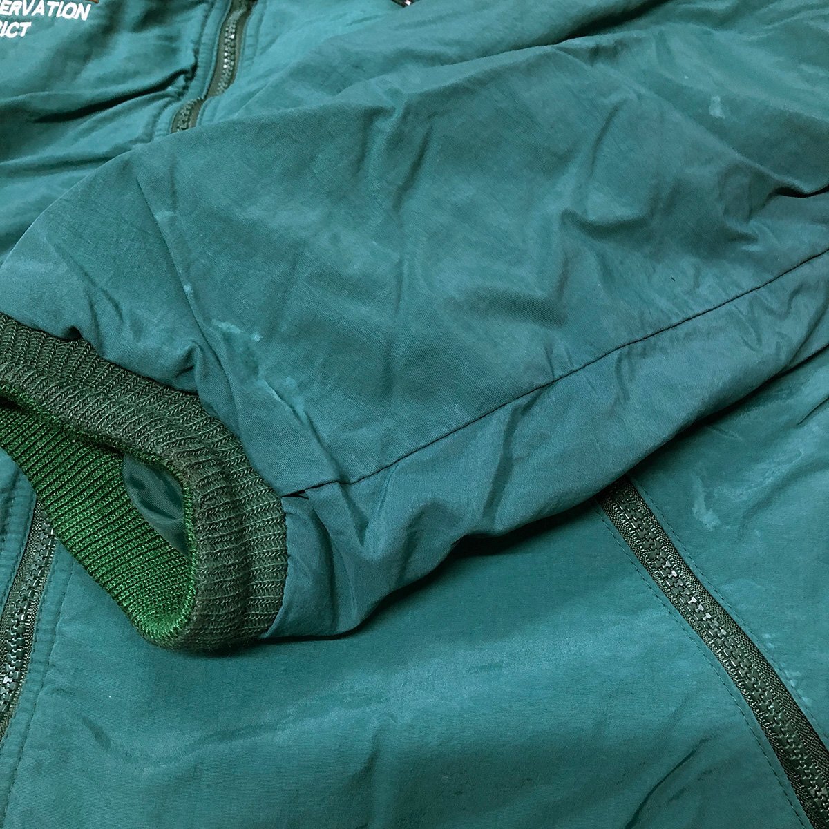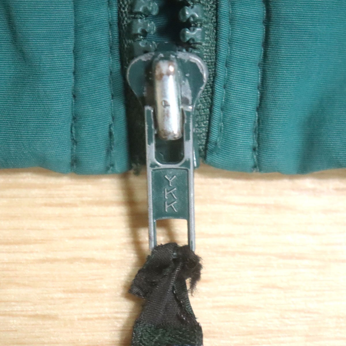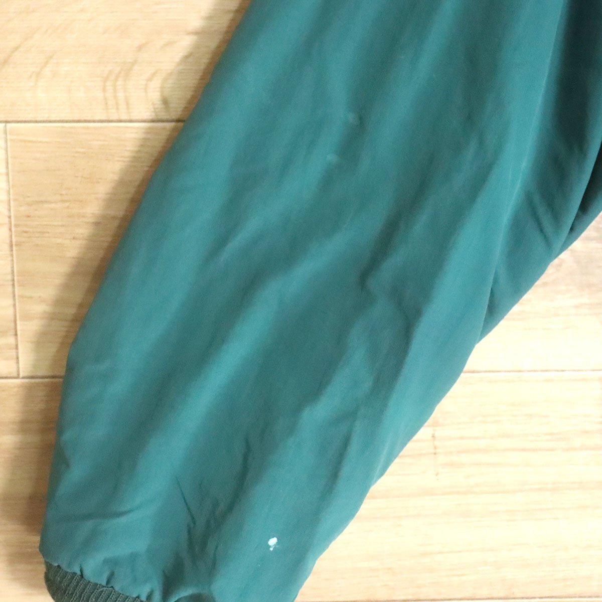 中古品です。使用感があります。両腕やフロントポケットなどに汚れやシミ、裾リブに小さなホツレ、フロントポケット内に小さな破れ、リブの伸び、裏地腕や両袖リブにリペア跡があります。