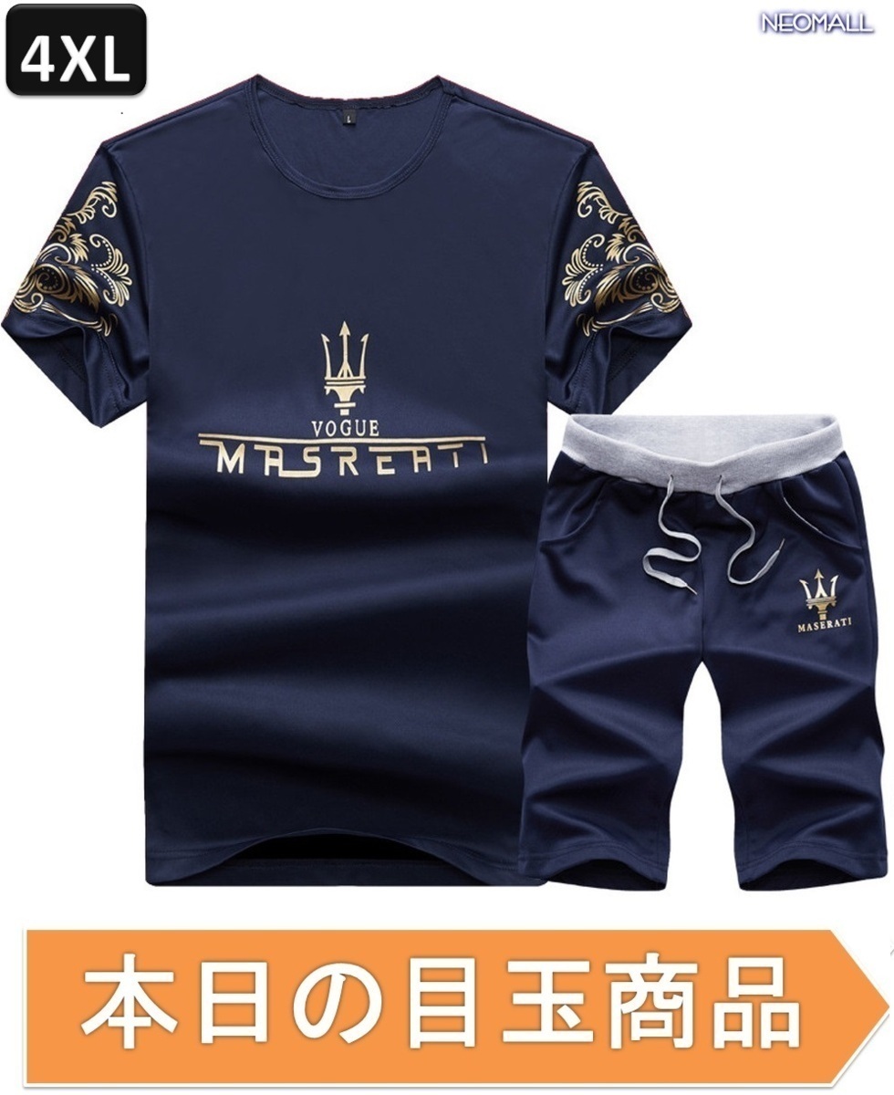 ☆今日の目玉商品☆ジャージ 上下 セット 半袖 部屋着 ルームウェア スポーツウェア セットアップ ネイビー×ネイビー 4XLサイズ 【355】