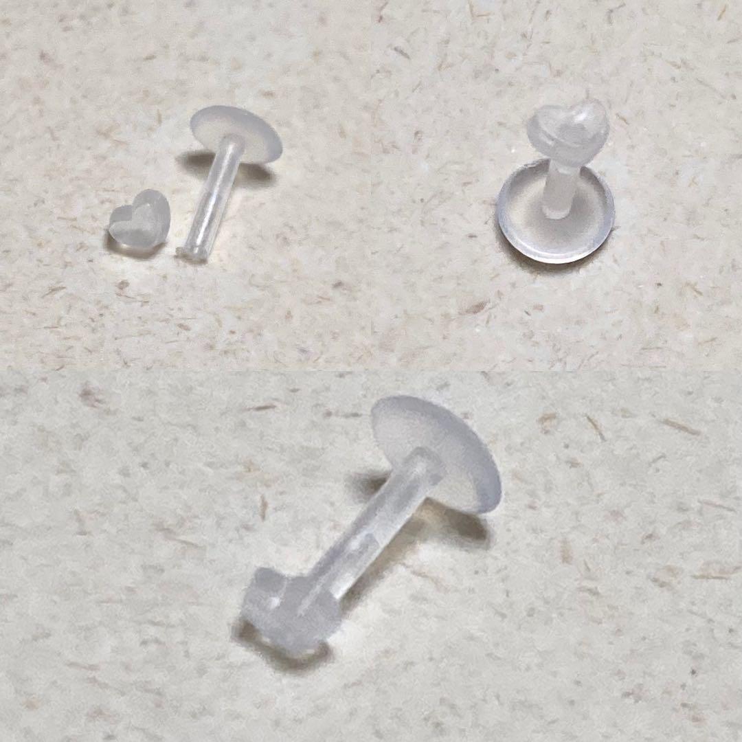5本セット 16G ハート型プッシュピン 樹脂ピアス 長さ12mm 透明