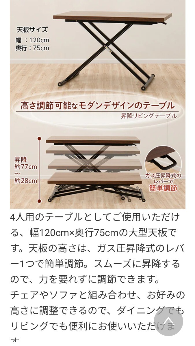 幅120×奥行75×高さ28~76.5cm素材天然木化粧繊維板(ウォールナット)重量約33kg