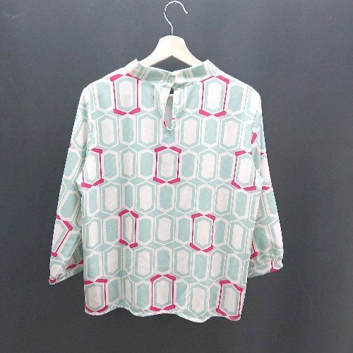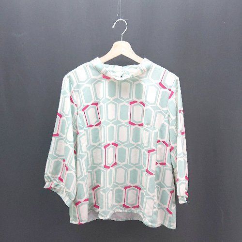 ◇ NEW COLLECTION 総柄 上品 綺麗め ポリエステル生地 おしゃれ 長袖 ブラウス サイズ表記なし グリーン系 レディース E