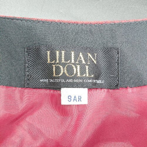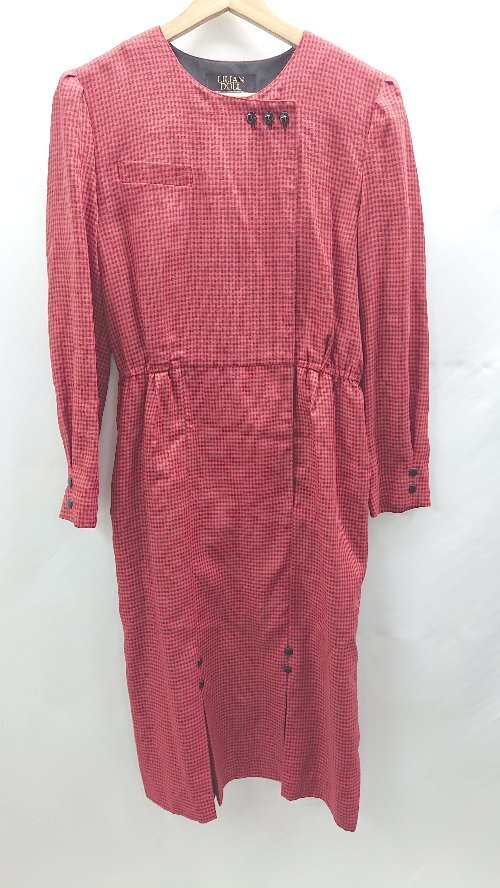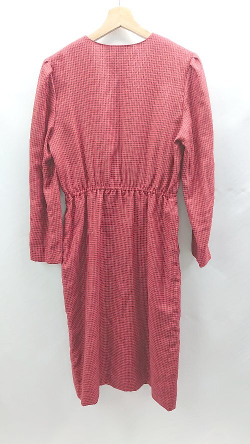◇ Θ LILIAN DOLL ウエストゴム チェック柄 長袖 ロング ワンピース サイズ9AR レッド ブラック レディース E