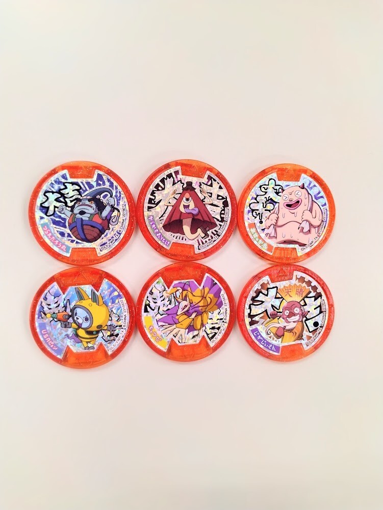 妖怪ウォッチ 妖怪メダル オレンジ 6枚セット つられたろう丸 からかさお化け あせっか鬼 USAピョン キュウビ じがじぃさん 中古品