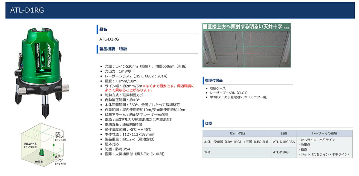 ムラテックKDS ドットラインレーザーD1RG受光器・三脚付 ATL-D1RG RSA