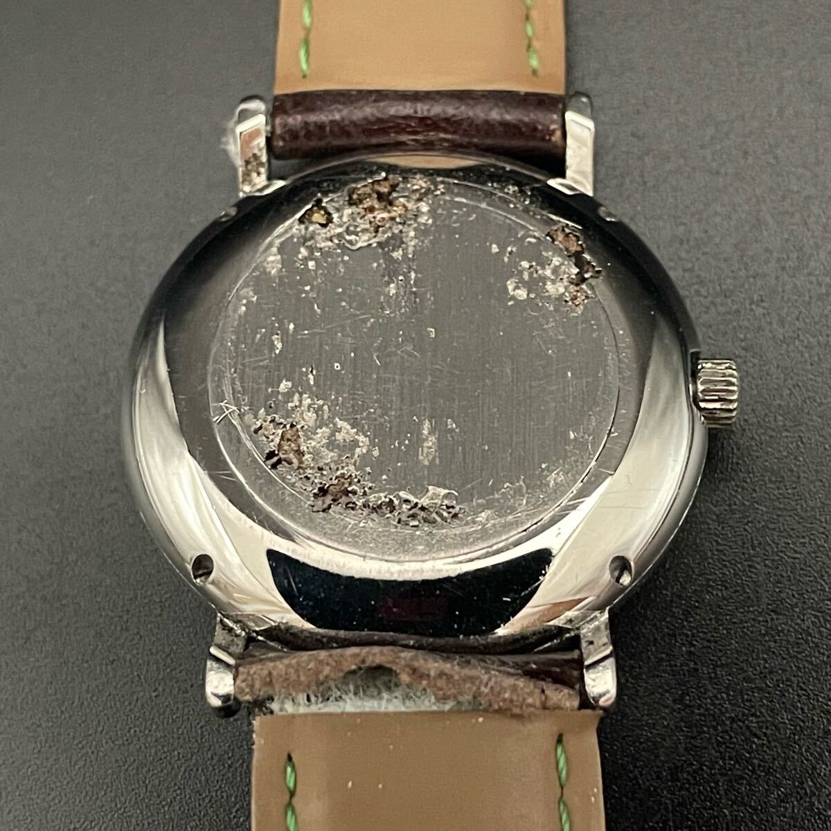 裏蓋・傷や削れ、腐食あり(樹脂コーティングで修復されています)
