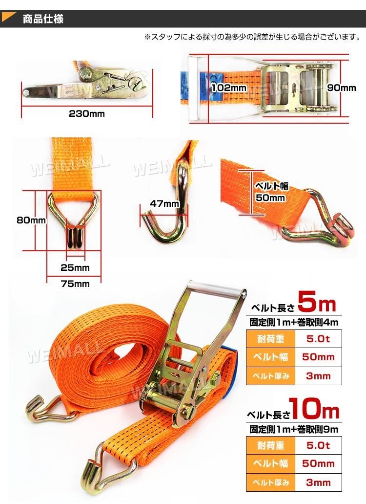 | 荷物、バイク、建築資材、引っ越しなどに重宝するラッシングベルトです。 国際基準CE&TUV&GS規格製品! 頑丈で使い易いJフック。 どんな荷締めも操作は簡単!だれでも素早く作業ができます。 丸型、角型から様々な荷姿に対応。 ベルト部分はポリエステル製だから大切な荷物にキズが付きにくく安心。 レジャーや引越しでも大活躍! 【商品仕様】 耐荷重:5000kg ベルト長さ(約):10m(巻取側:9m / 固定側:1m) ベルト幅(約):50mm ベルト厚み(約):3mm 本体重量(約):2.7kg ベルト材質:ポリエステル強力糸製 国際基準CE&TUV&GS規格 【商品内容】 ラッシングベルト ×2 【注意事項】 ・入荷時期によりカラーが変わる場合がございますが、ご了承ください。 ・本製品の使い方を誤ると、荷の落下など危険な状態になりますのでご注意ください。 (ラッシングベルト ラチェット式 トラック用 ラチェット タイダウンベルト 荷締ベルト ベルト荷締め機 バンド ベルト フック ロープ 固定 タイ 荷物 荷物固定 車載 荷台 引越し 業務用 激安) |
