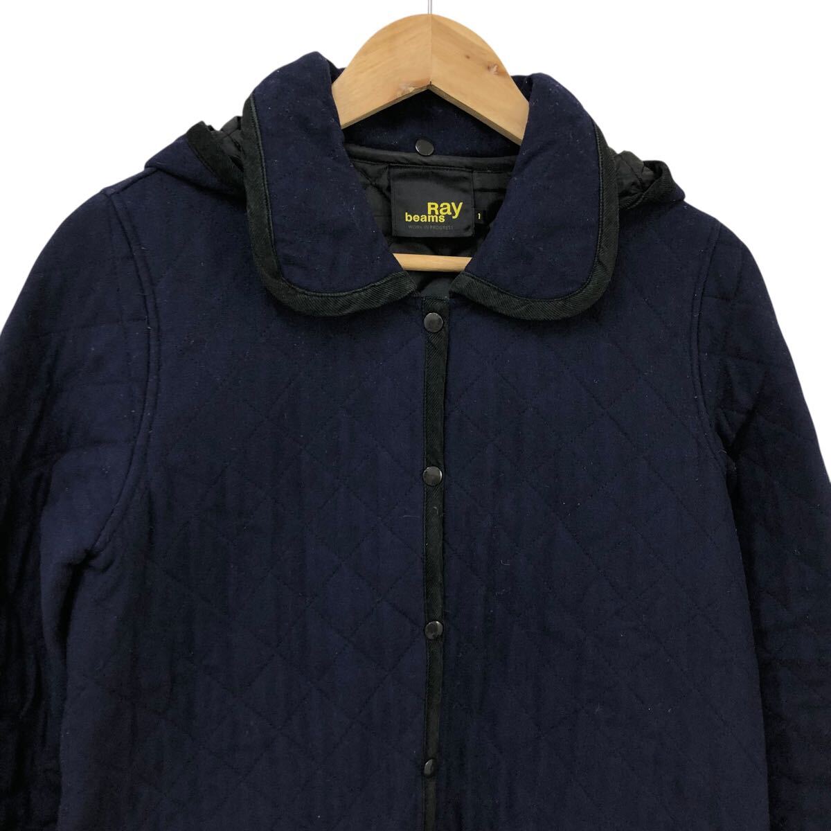12m688-53 Ray beams レイ ビームス 中綿 キルティング コート ウール フード アウター ネイビー 紺 レディース 1