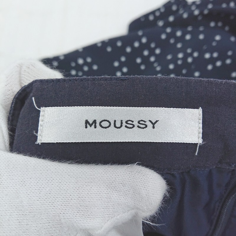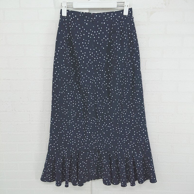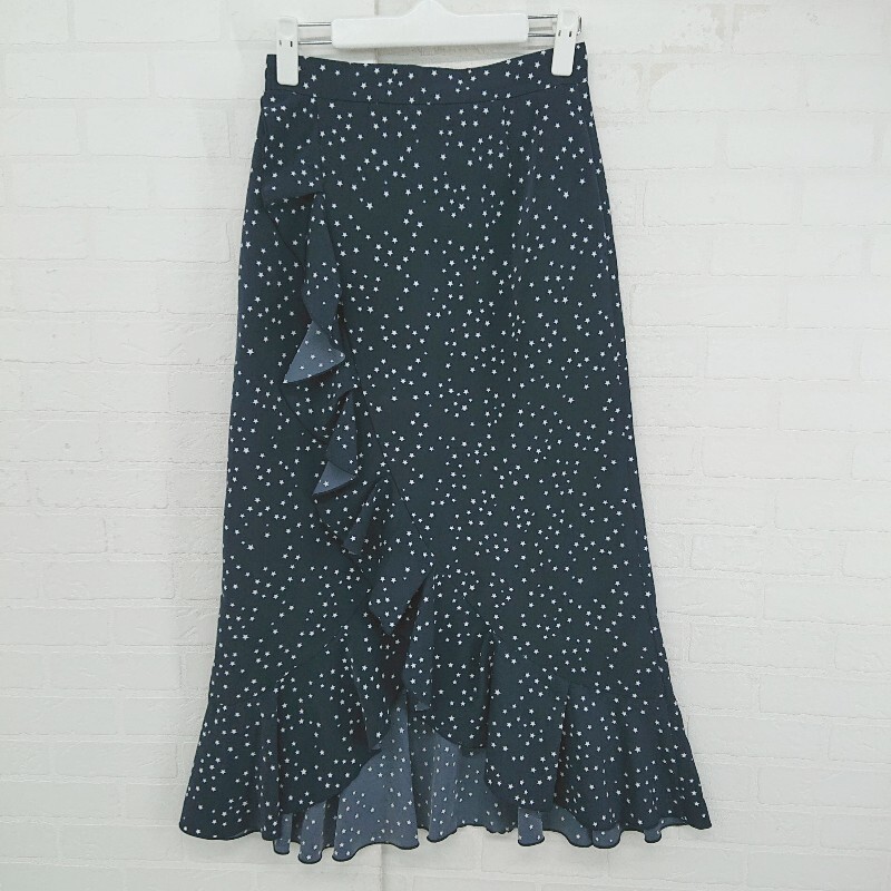 ◇ MOUSSY スター 星柄 フリル かわいい ロング ラッフル フレア スカート サイズ1 ネイビー ホワイト レディース P