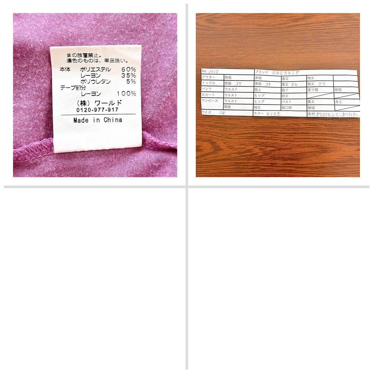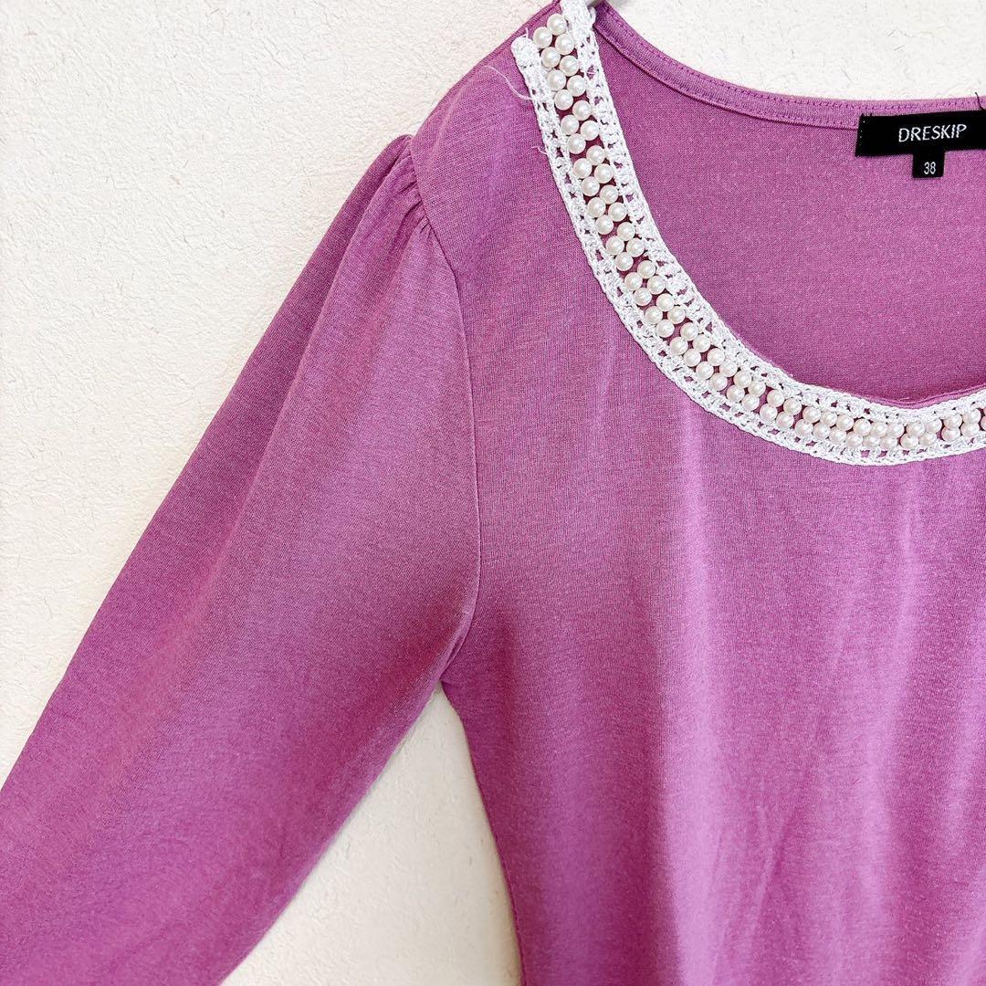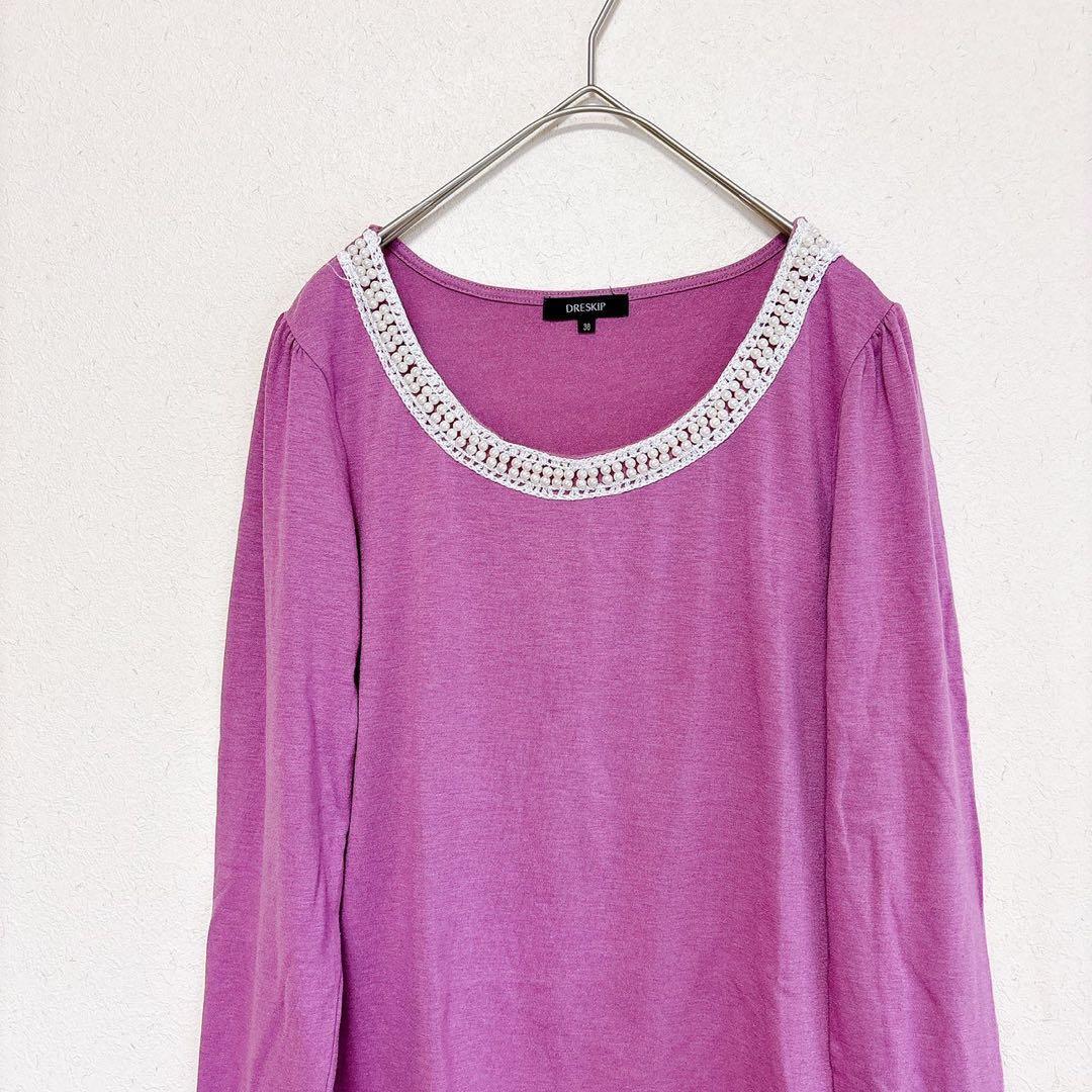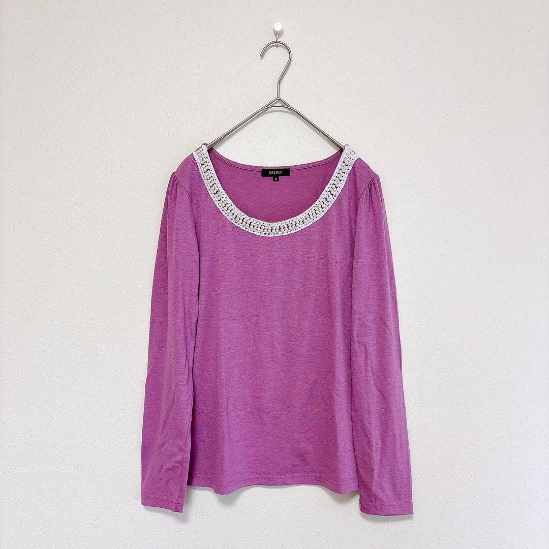 DRESKIP パール付きカットソー 長袖 むらさき 38 レディース 013C6C