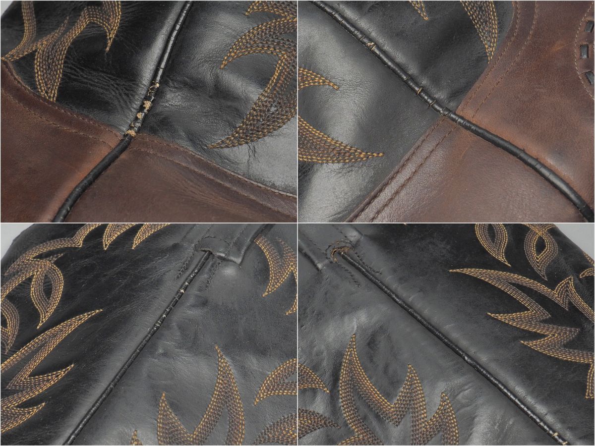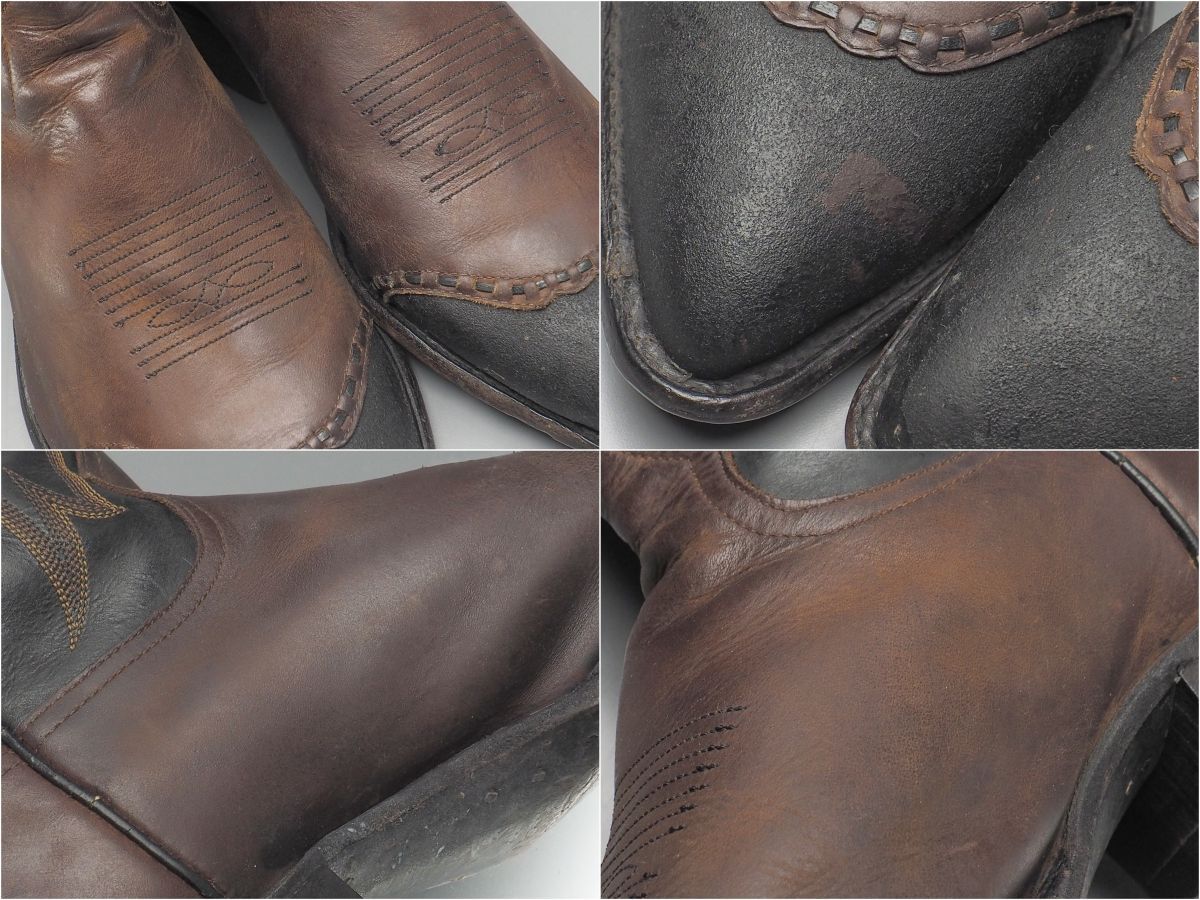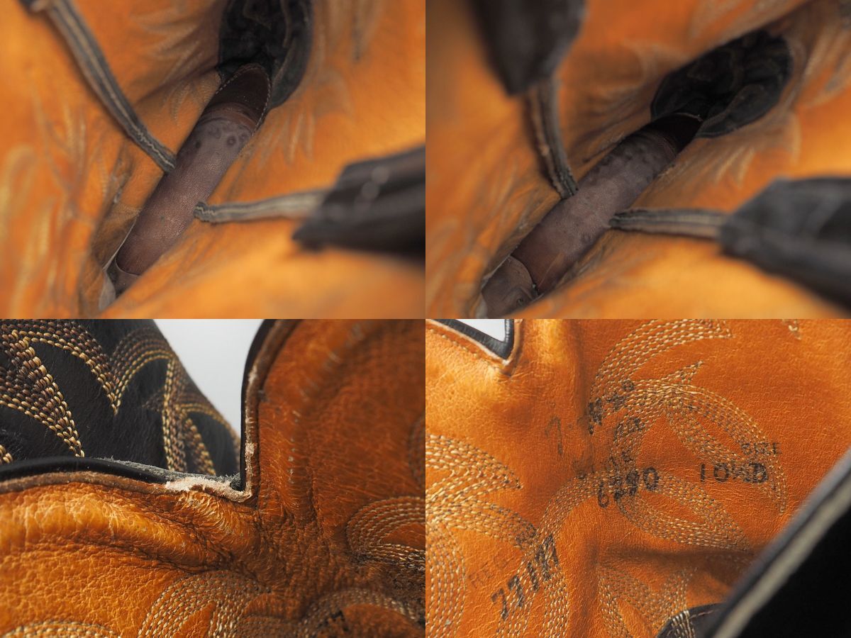 アメリカの老舗ブーツブランド「トニーラマ/Tony Lama」の一足です。 茶と黒のスムース革を合わせ、トゥやかかと部分に黒のオイルスウェードをあしらい、シャフト部分には繊細なステッチワークが施された個性の光るウエスタンブーツ。 底付けにはグッドイヤーウェルテッド製法を採用し、堅牢に仕立て上げられております。 製法:グッドイヤーウェルテッド アウトソール:レザー トップリフト:ラバー ライニング:レザー ※撮影用のシューキーパーは付属致しません。 ※本物の商品ですのでご安心の上オークションをお楽しみ下さい。 ※タイトル頭の英数字は弊社の管理番号です。 ※ほかにも多数の商品を出品しています。 ※同梱に関しましては「まとめて取引」でのみ対応可能です、その他の方法での同梱対応は出来かねます。 (※商品の特性上、同梱対応出来ない商品もございますので予めご了承下さい。) |
