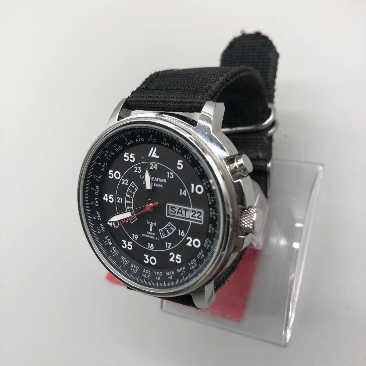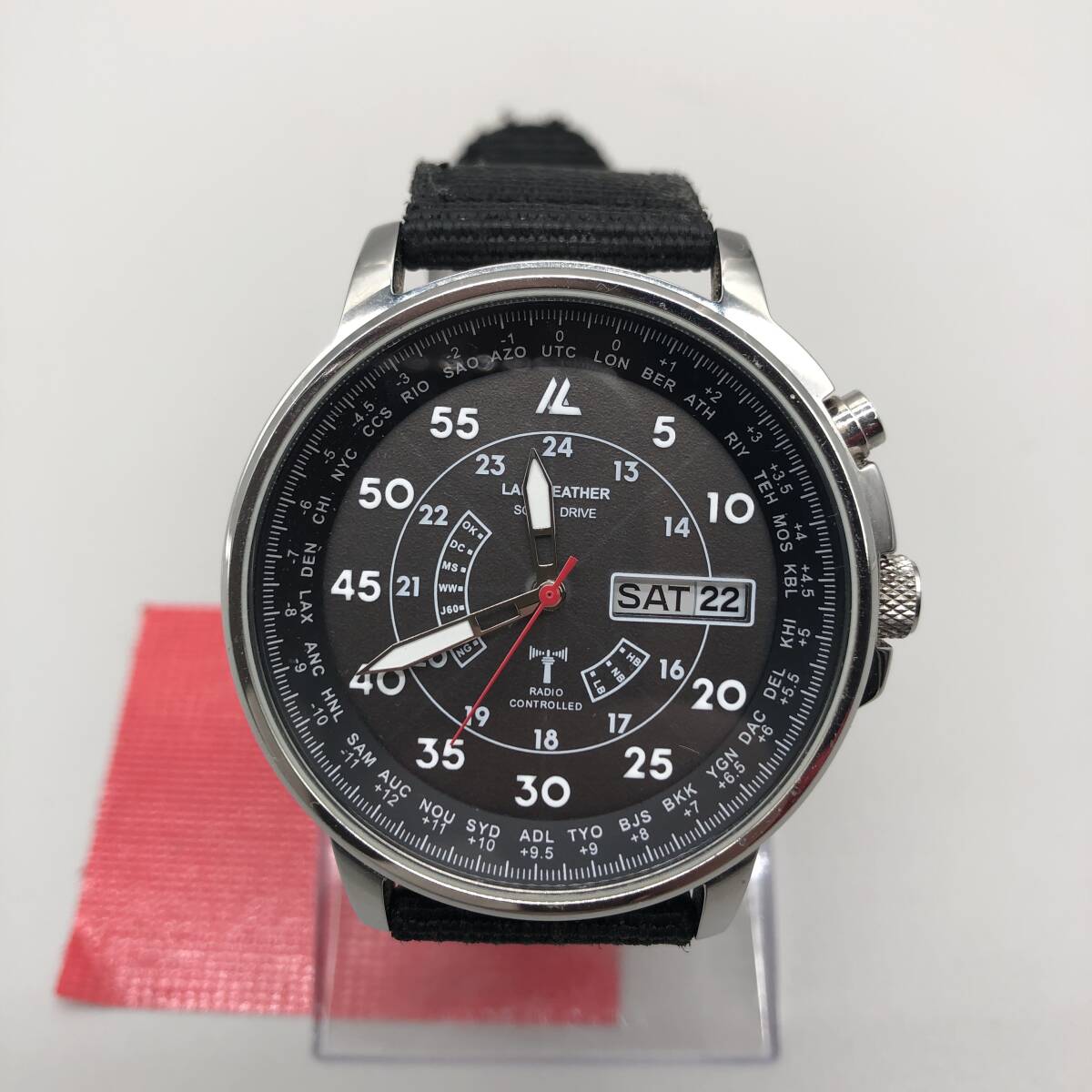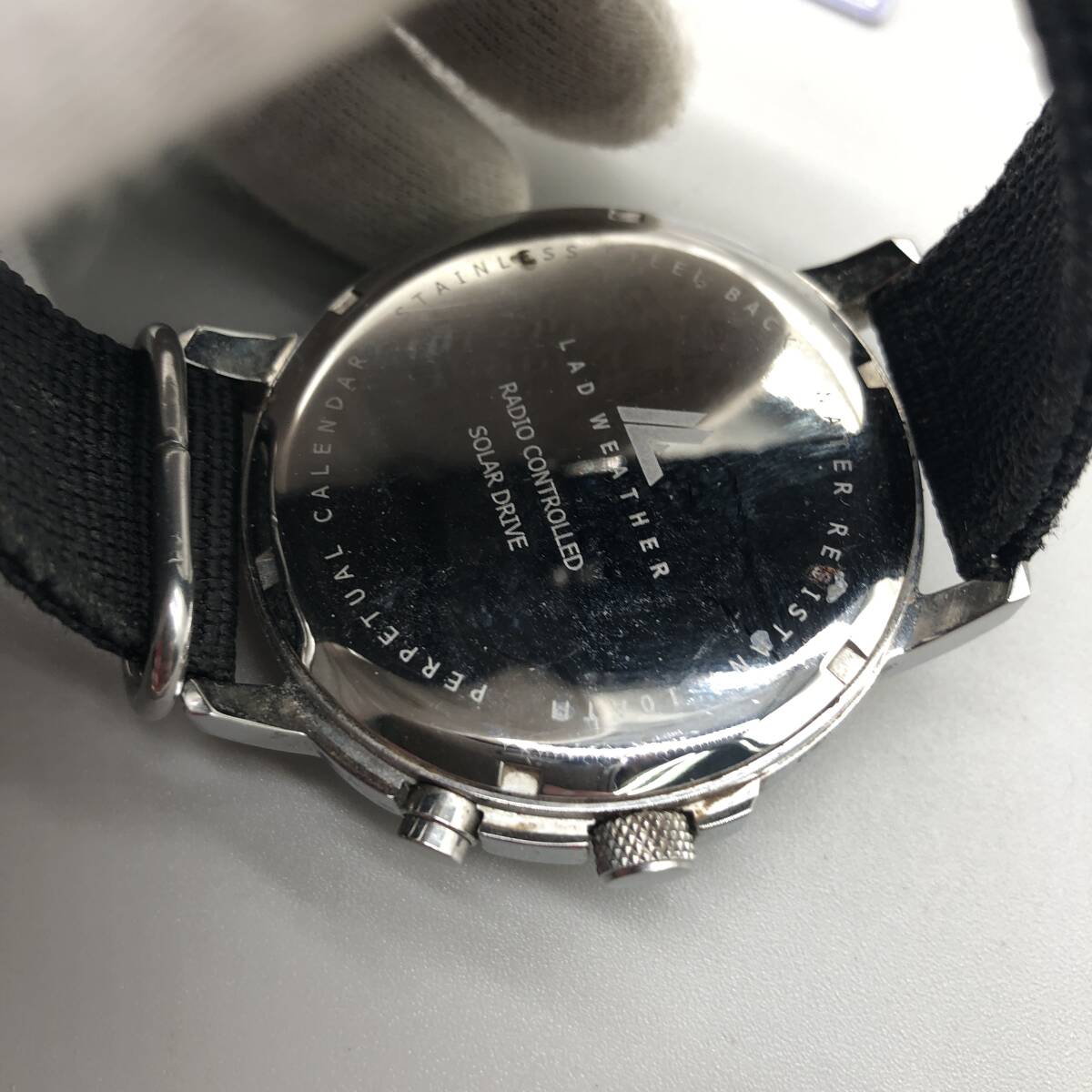 『売り切り』美品 ラドウェザー 電波 ソーラー アナログ 腕時計 メンズ レディース ブラック文字盤 ブランド シルバーカラー O