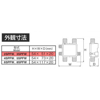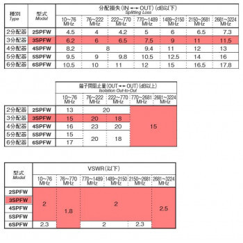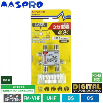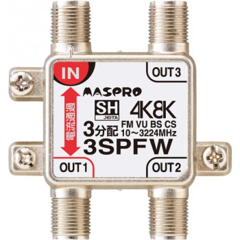 | 4K・8K衛星放送(3224MHz)に対応、地デジ・BS・CS分配器(1端子電流通過型3分配器)です。 |