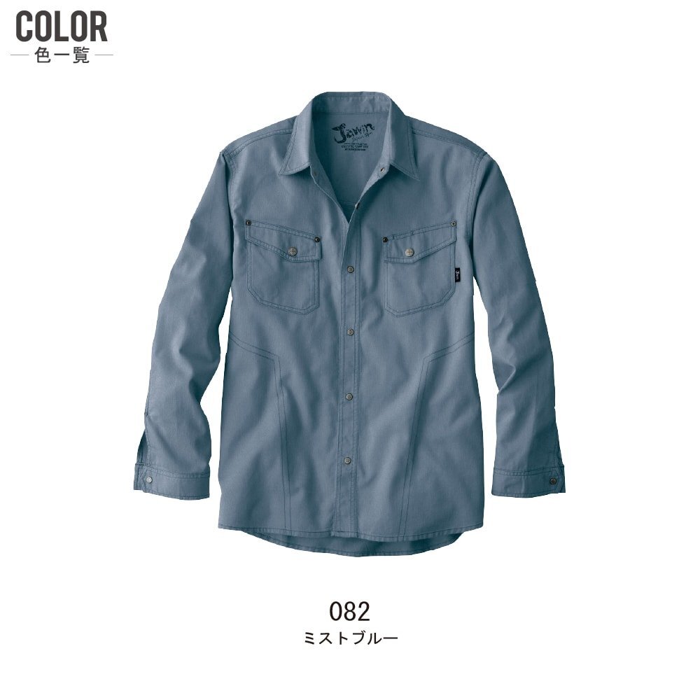 Jawin ジャウィン 秋冬 長袖 シャツ 綿100% デニム調生地 51104 色:ミストブルー サイズ:S ★ 対象2点 送料無料 ★