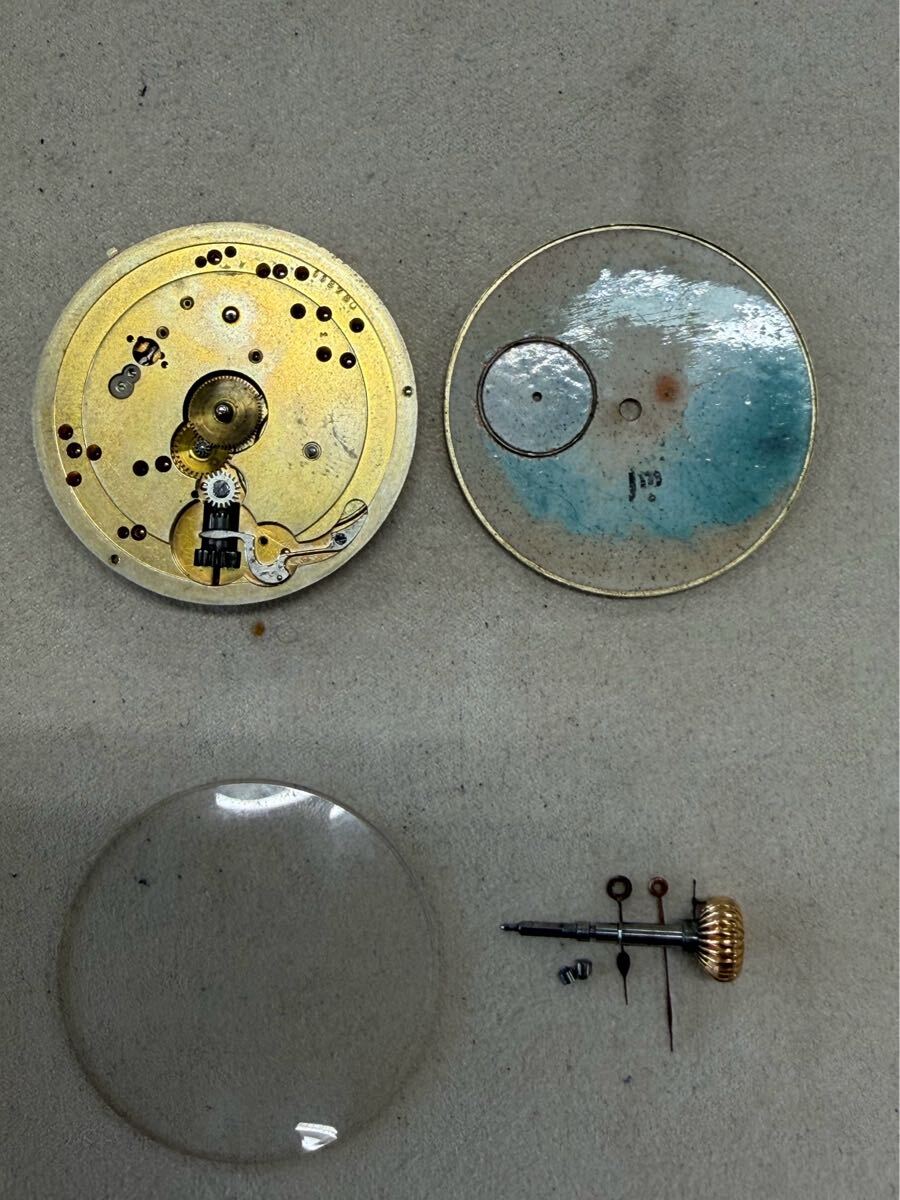 蓋などは金として売ってしまいました。リューズのトップ部分は出し忘れていました。金の気がします。