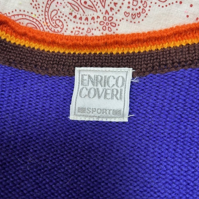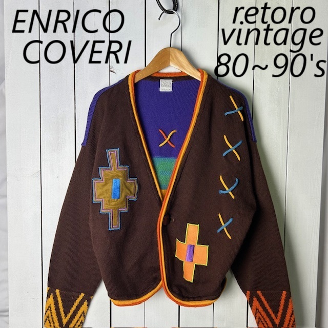 レトロ 80s90s ENRICO COVERI ショート丈 ウールニットカーディガンジャケット M 短丈 オールド ヴィンテージ ミドル エンリココベリ●323