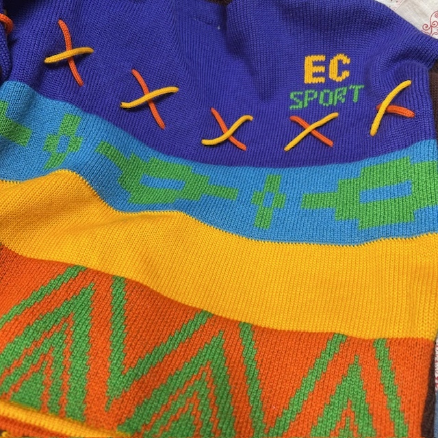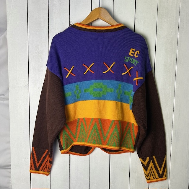 #ヴィンテージ#オールド#70s#80s#90s#70年代#80年代#90年代#vintage#ニット#ニットセーター#中厚手#レトロ#セーター#ウール#総柄#ミドルゲージ#ワッペン#刺繍#装飾#ジャガードニット#短丈#ショート丈