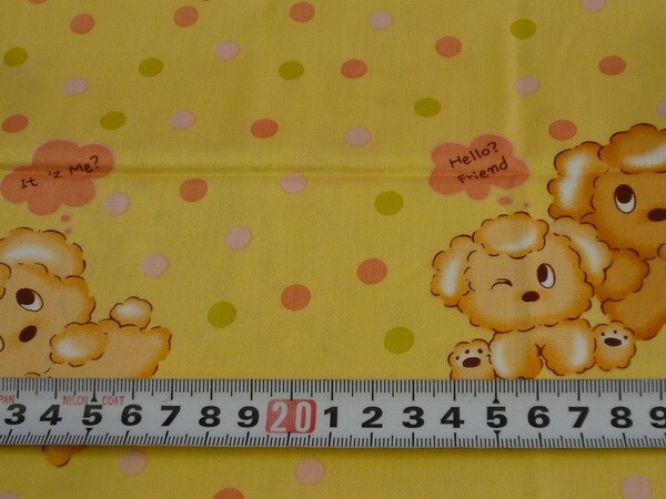 100*40★黄色・クマ柄の・ハギレ・生地・布★0551-35