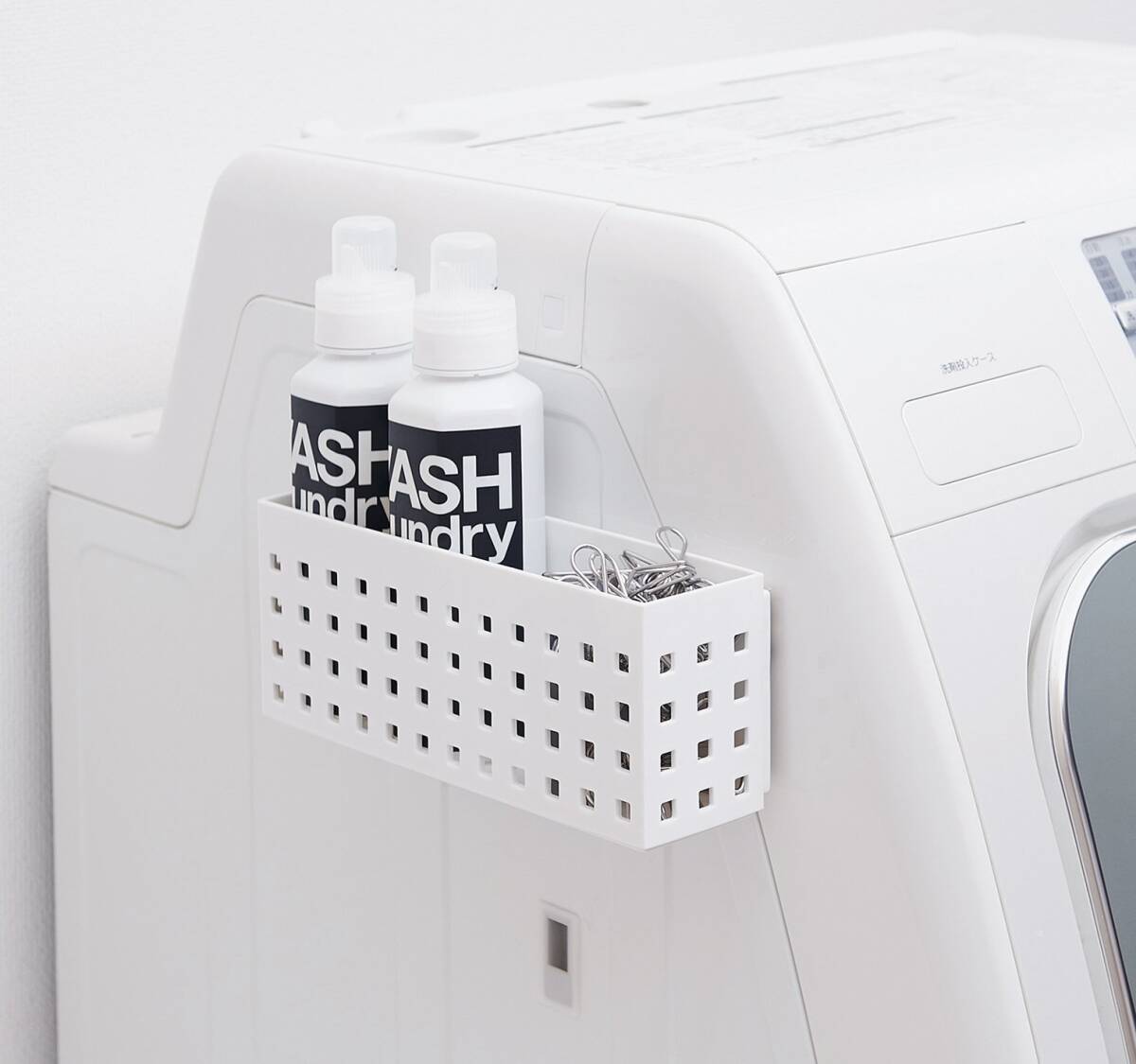 商品紹介 毎日使う小物をサッと出し入れ、マグネット小物収納ケース ラップやホイル、洗濯小物の収納に便利な小物入れ マグネット式で、冷蔵庫や洗濯機などにも 出し入れがしやすく見た目もスッキリ 冷蔵庫サイドでは、ラップやアルミホイルの収納に 洗濯機サイドでは、洗濯バサミや部分用洗剤などの収納に より ●マグネット収納の魅力を最大限に引き出した便利なアイテム『Mag-on』シリーズ ●冷蔵庫や洗濯機、スチール製のレンジ台やデスク、ロッカー、マンションのスチールドアなどに強力マグネットで簡単着脱 ●出し入れがしやすく見た目もスッキリ ●仕切り3枚付きだから、長いラップなども倒れずに収納OK! ●ズレ落ちを防ぐ吸盤は地球にやさしいオレフィン系材料 ●強力マグネットは設置面にやさしい、キズ防止加工 ●グッドデザイン賞受賞商品!
