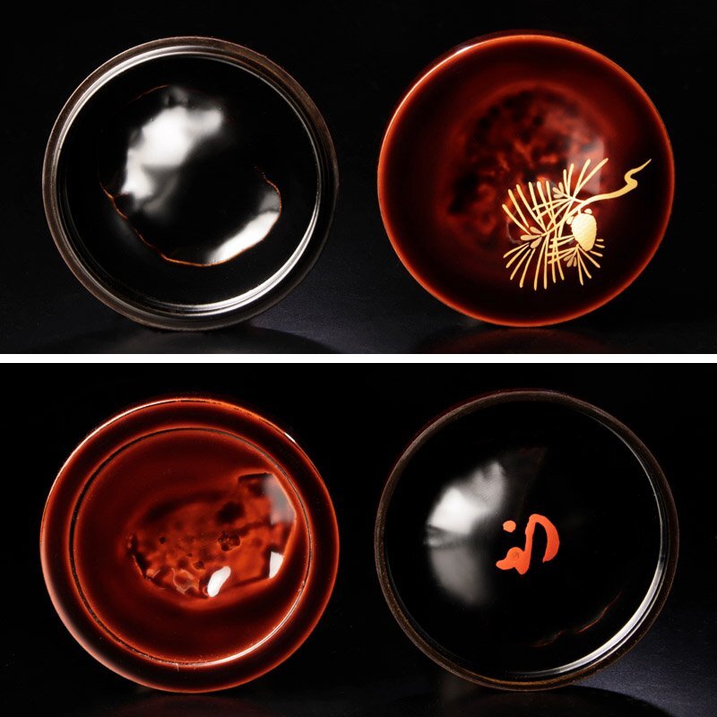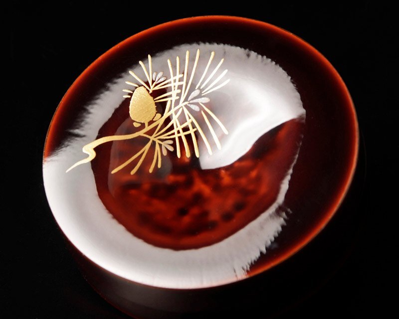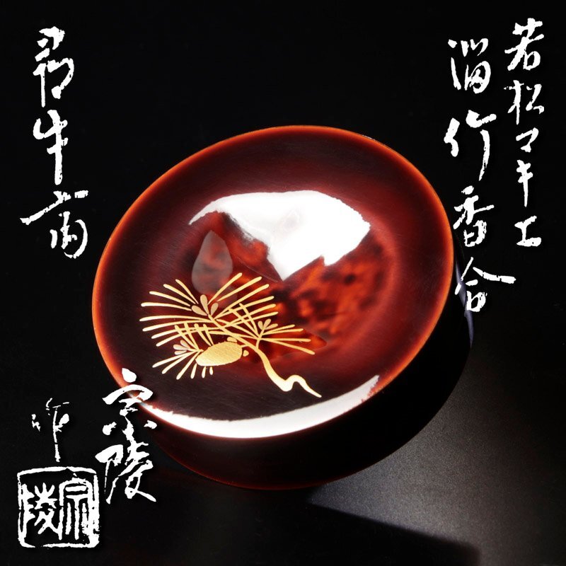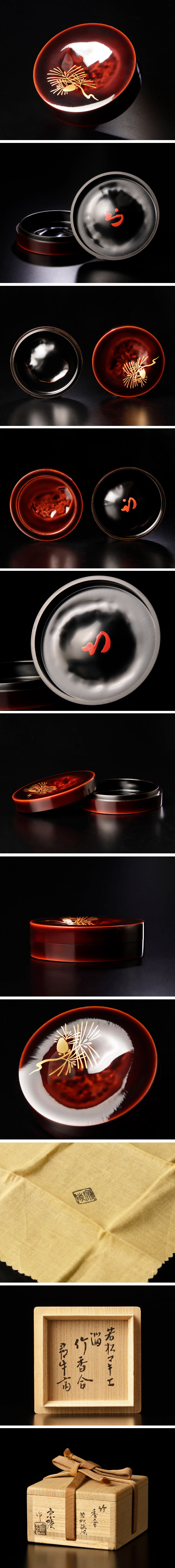 竹に施された溜塗の深い輝きに、若松の描写がそっと寄り添い、静かな品格と趣がにじむ香合です。 ★商品は高野宗陵作・久田宗也(尋牛斎)書付の作品である事を保証致します。 |