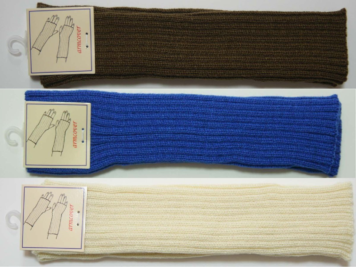 送料無料◆3色組◆アームウォーマー◆親指穴付き◆防寒◆無地◆リブ編み◆あったかアームカバー(ブラウン&ブルー&クリームベージュ)